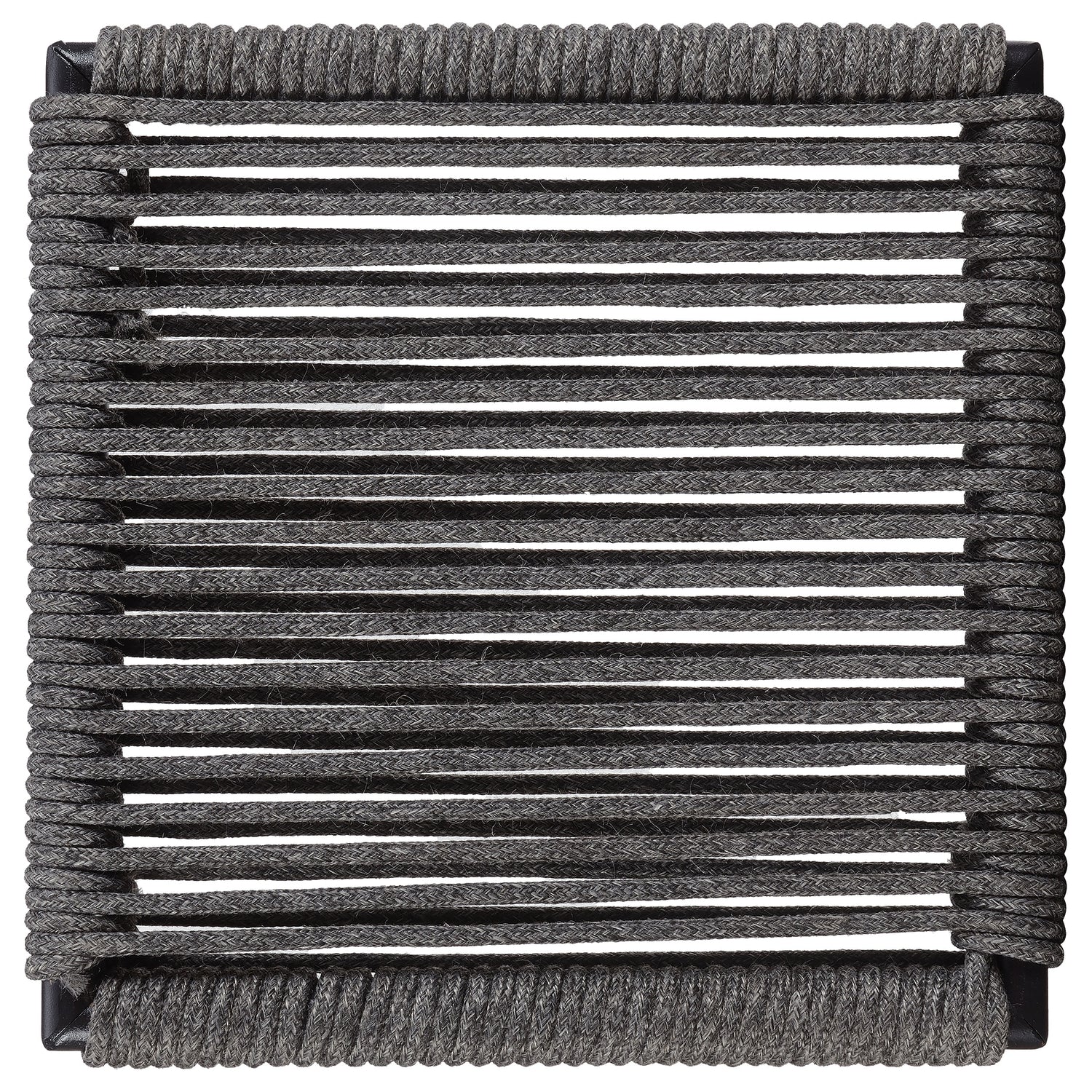 - Create a restful spot with a tall and slender metal frame in a gunmetal finish, wrapped in charcoal tone rope around the backrest and seat,