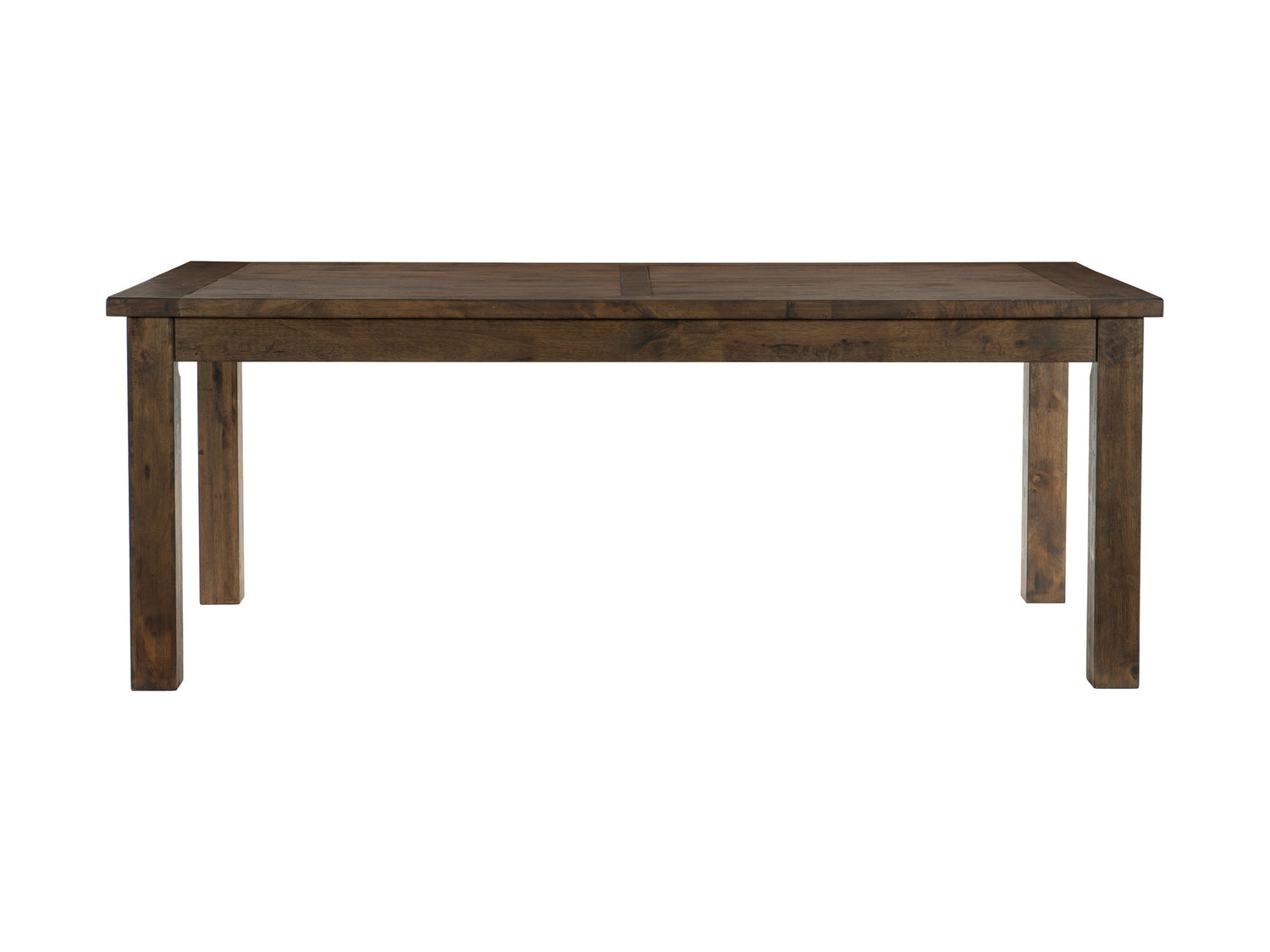 Classic transitional design serves as a base for the natural qualities of the solid wood utilized to create the rustic look of the Jerrick Collection. The rustic look of the fixed-top dining table is enhanced by the burnished finish over the solid wood grain, allowing each plank to serve as a unique accent to the overall design of the table.