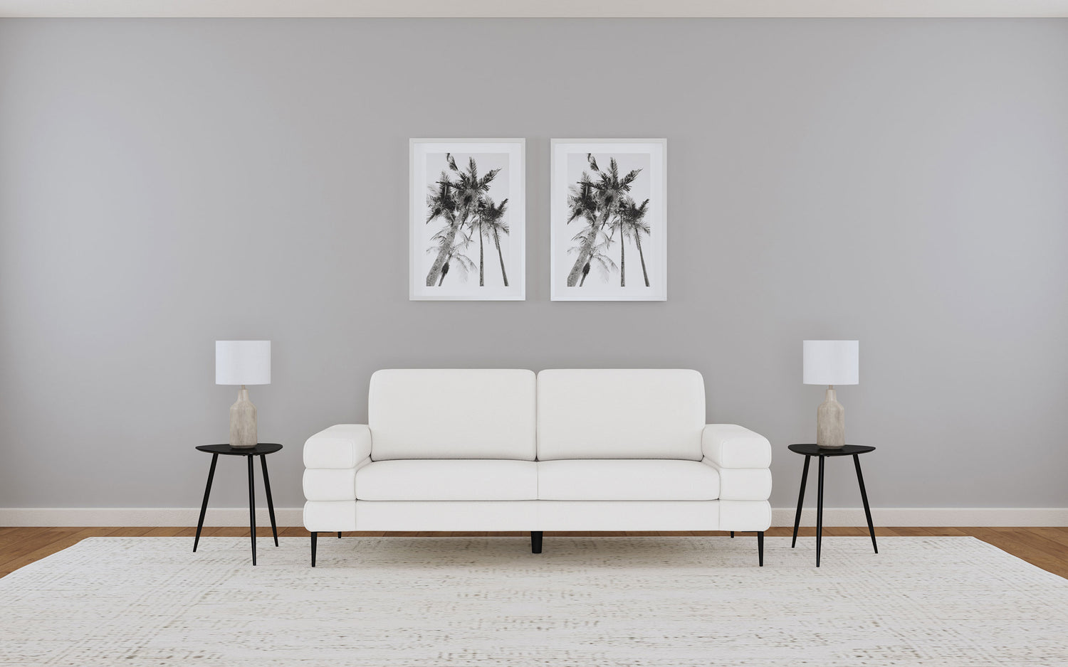 - Includes: One (1) sofa- Ivory sofa with tube like geometric sculptured track arms
