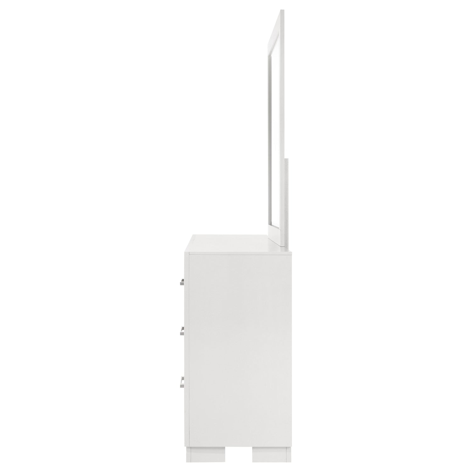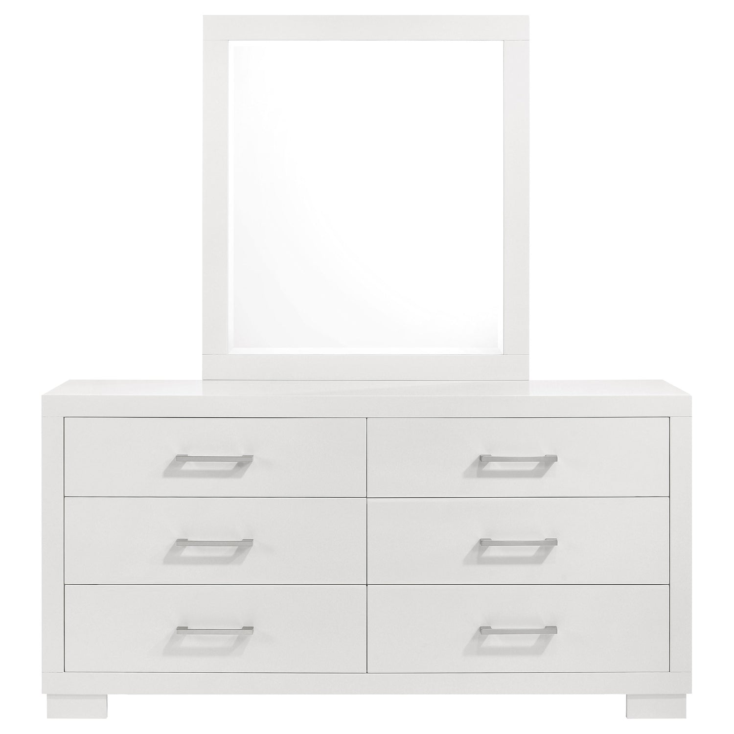 - Includes: One (1) dresser and one (1) dresser mirror- Contemporary dresser with six spacious drawers