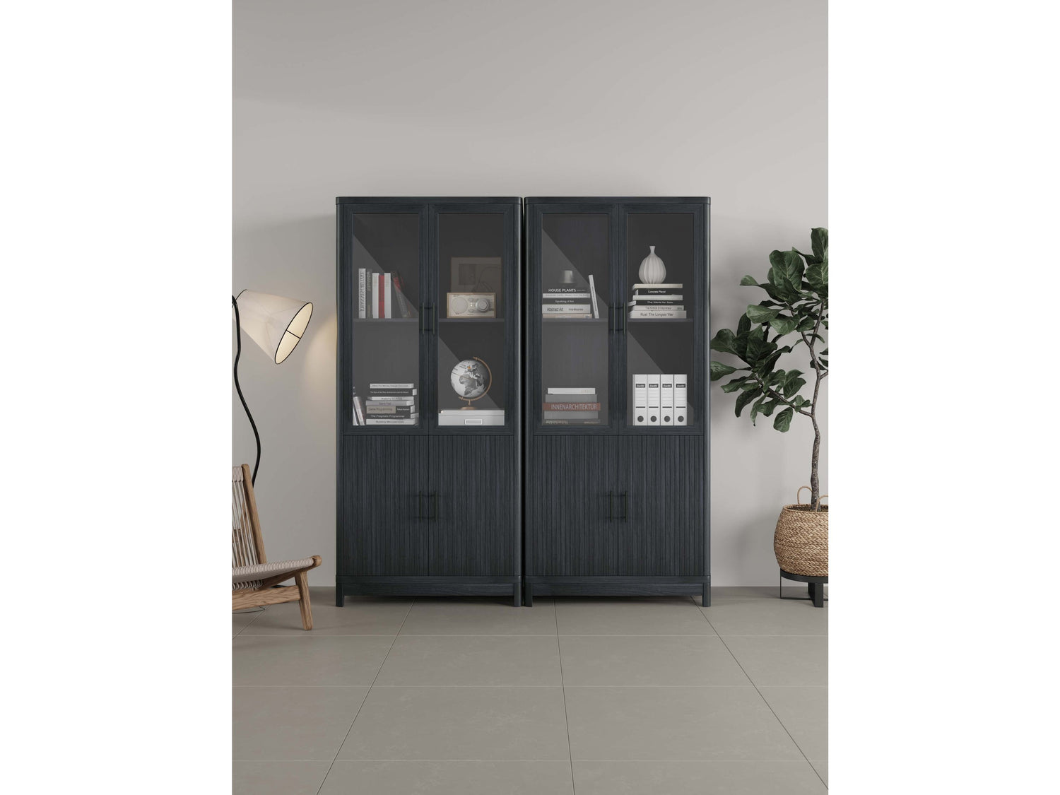 - Each Bookcase Includes 2 Soft Close Tempered Glass Panel Display Doors on Top and 2 Ribbed Manufactured Wood Soft Close Doors on Bottom.