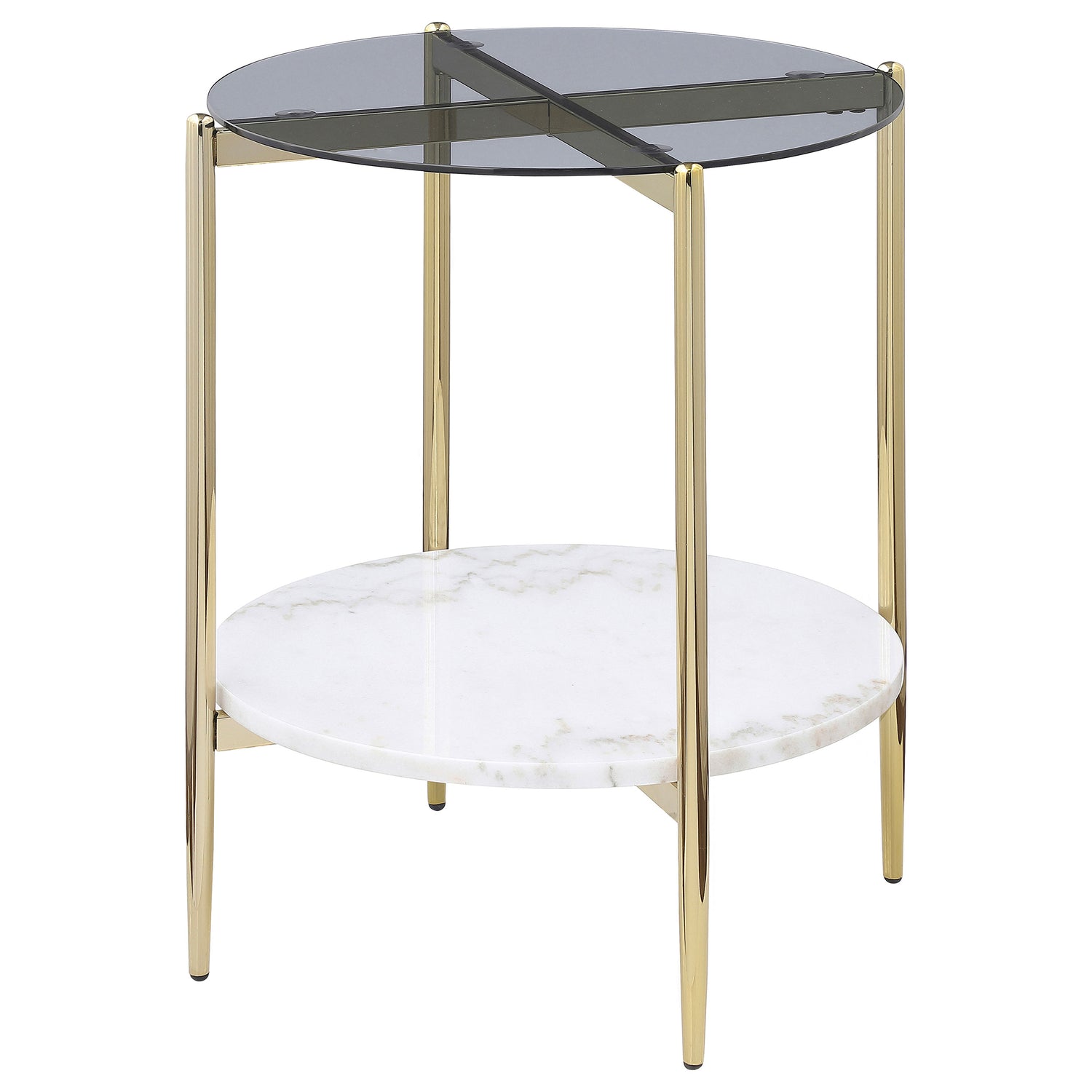 - Includes: One (1) end table- Modern glam style lends prominent character to a chic round end table