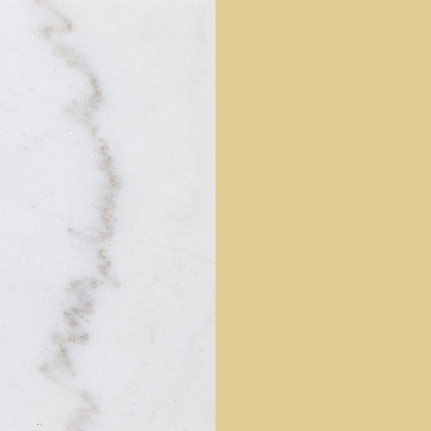 - Round lower shelf is crafted in white marble for a crisp, luxurious look and feel