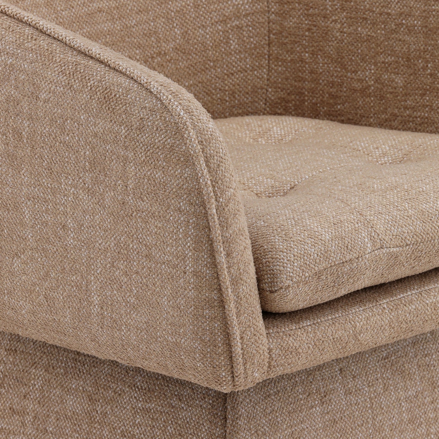 The Jonie Dining Swivel Chair is upholstered in soft polyester fabric with a warm camel finish. Its swivel feature offers added versatility and comfort, making it a stylish and practical choice for any dining space. The chair's sleek design and neutral tone effortlessly complement a variety of interior styles.