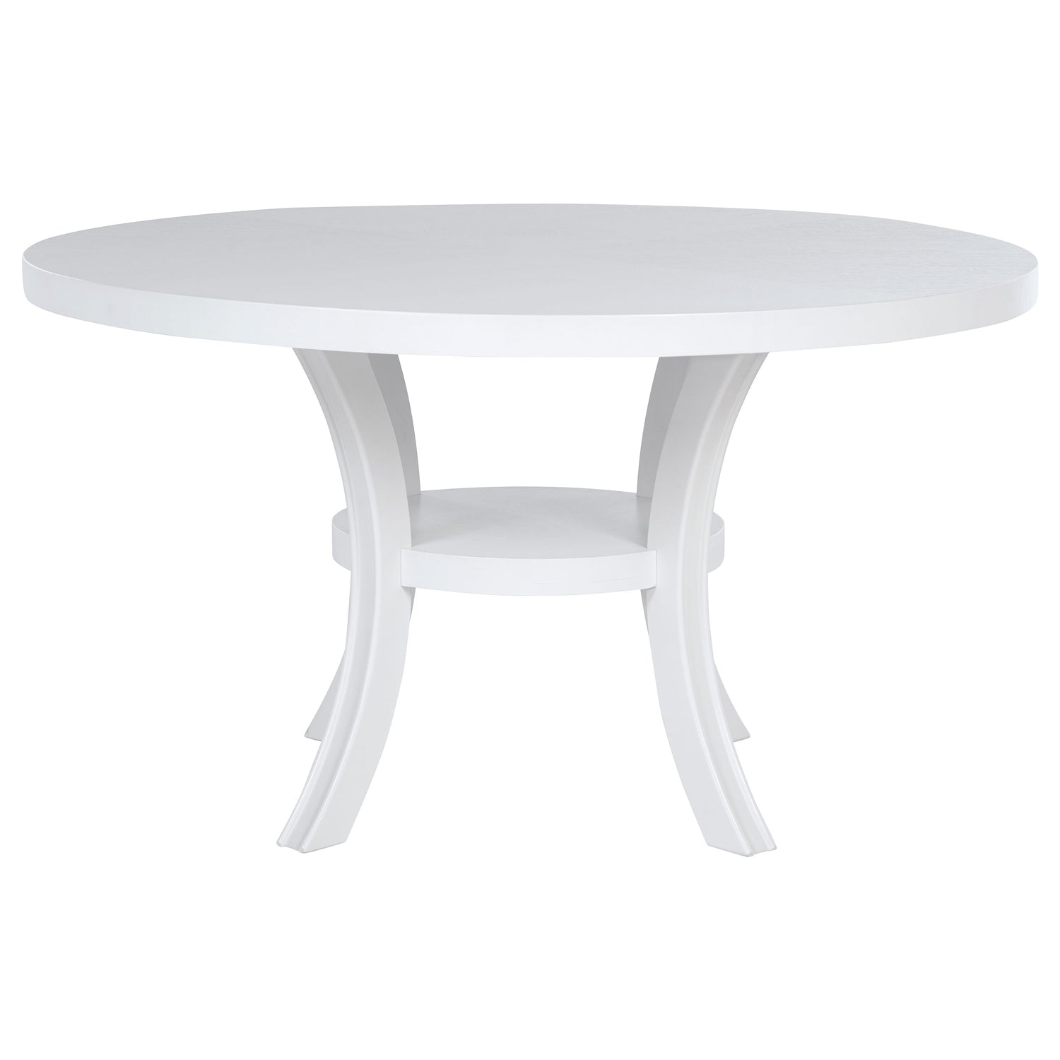 - Flared legs add visual interest and are unified with a round shelf on the table