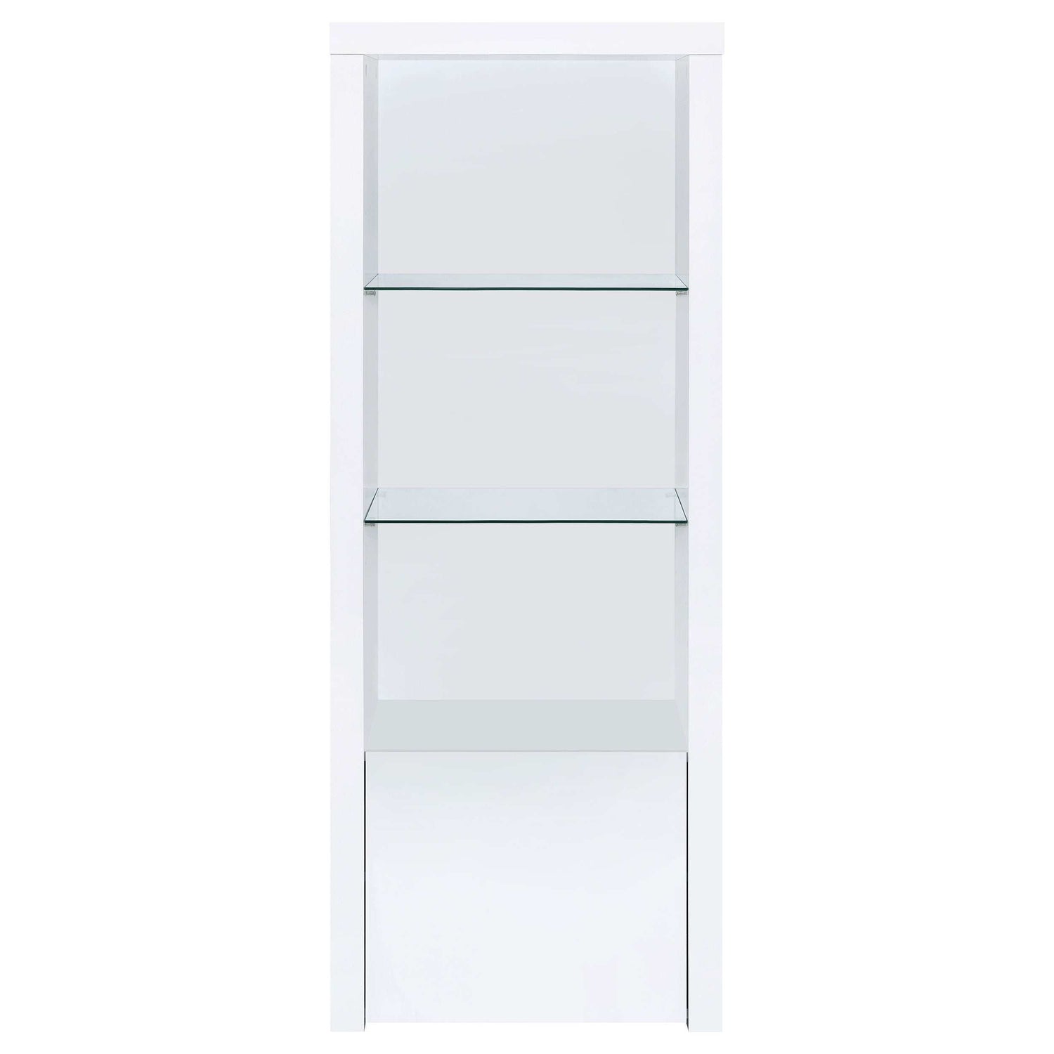 Sleek, modern design with pristine glossy white-on-white finish and clear glass details