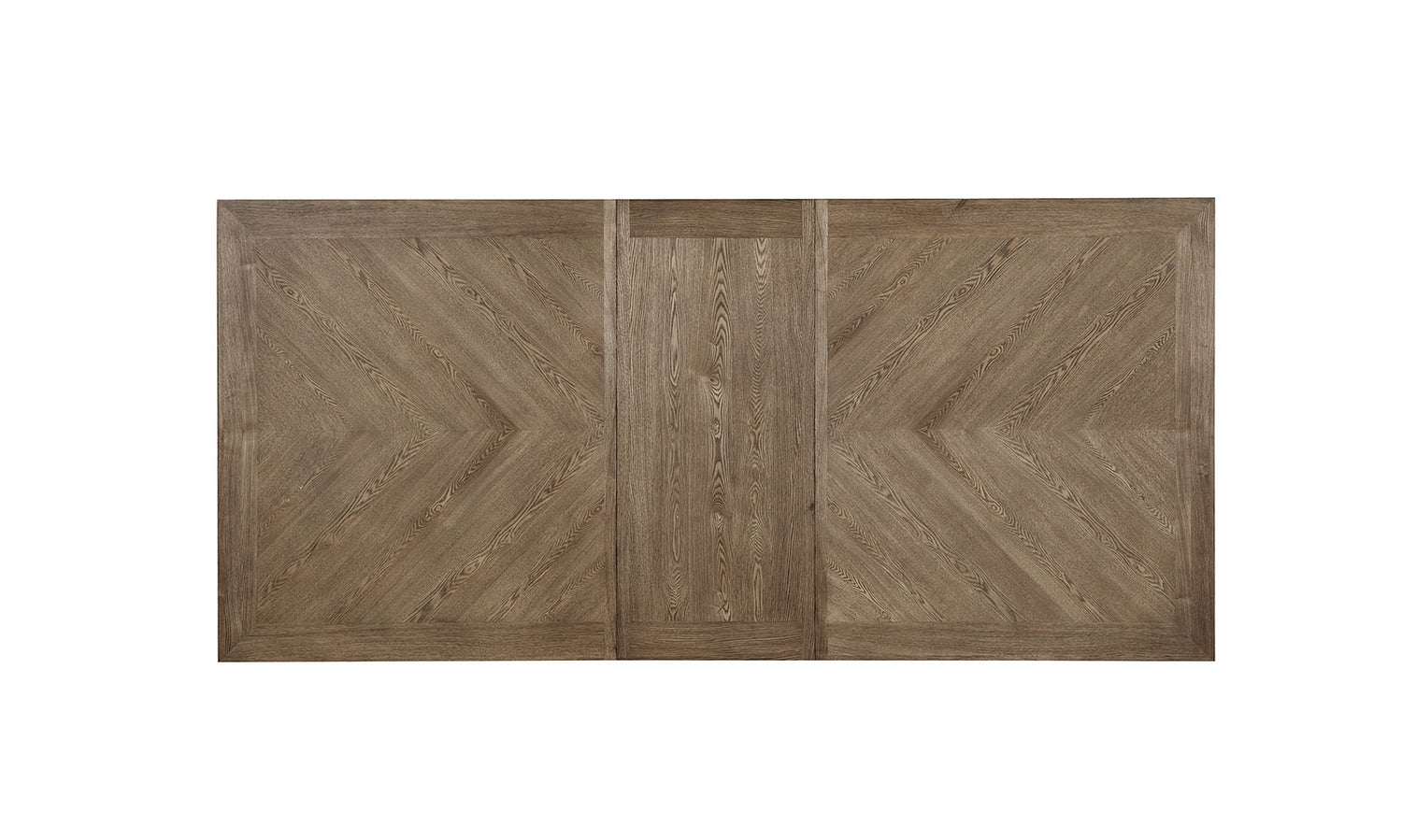 Define your living room with this stylish dining set. Light oak finishes warm the set, creating an inviting ambiance with rustic undertones. Angled legs and the central support beam add character and support to the table while a handy leaf ensures spacious room. Chairs are exquisitely detailed with framing nailhead trim and soft curves along the arched backs. Keep dinnerware and spirits handy with the server that features unique x-cross cabinets, a dedicated wine rack and stemware glass holders. Timeless and functional, this dining set will keep your home organized, cozy and comfortable.