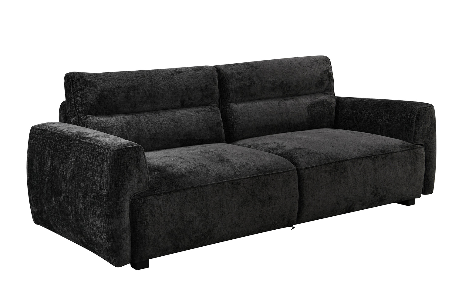 The Julian Black Sofa bed features a forward-pull design that easily converts the sofa into a flat sleeping surface by folding the backrest down. Upholstered in high-quality fabric, it offers a refined look and durable comfort, making it a practical and stylish addition to any living area.