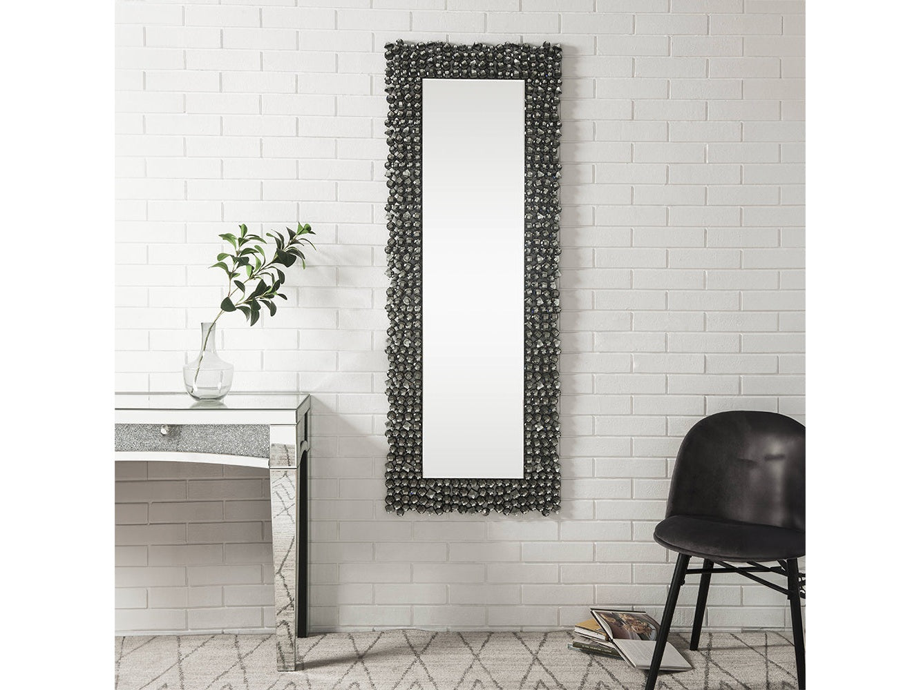The Kachina wall mirror features rectangular shape with faux gem trim to create a modern look and bring a charming accent to your decor. The beveled mirrored edges catch the light from all angles that naturally attracts the eye.