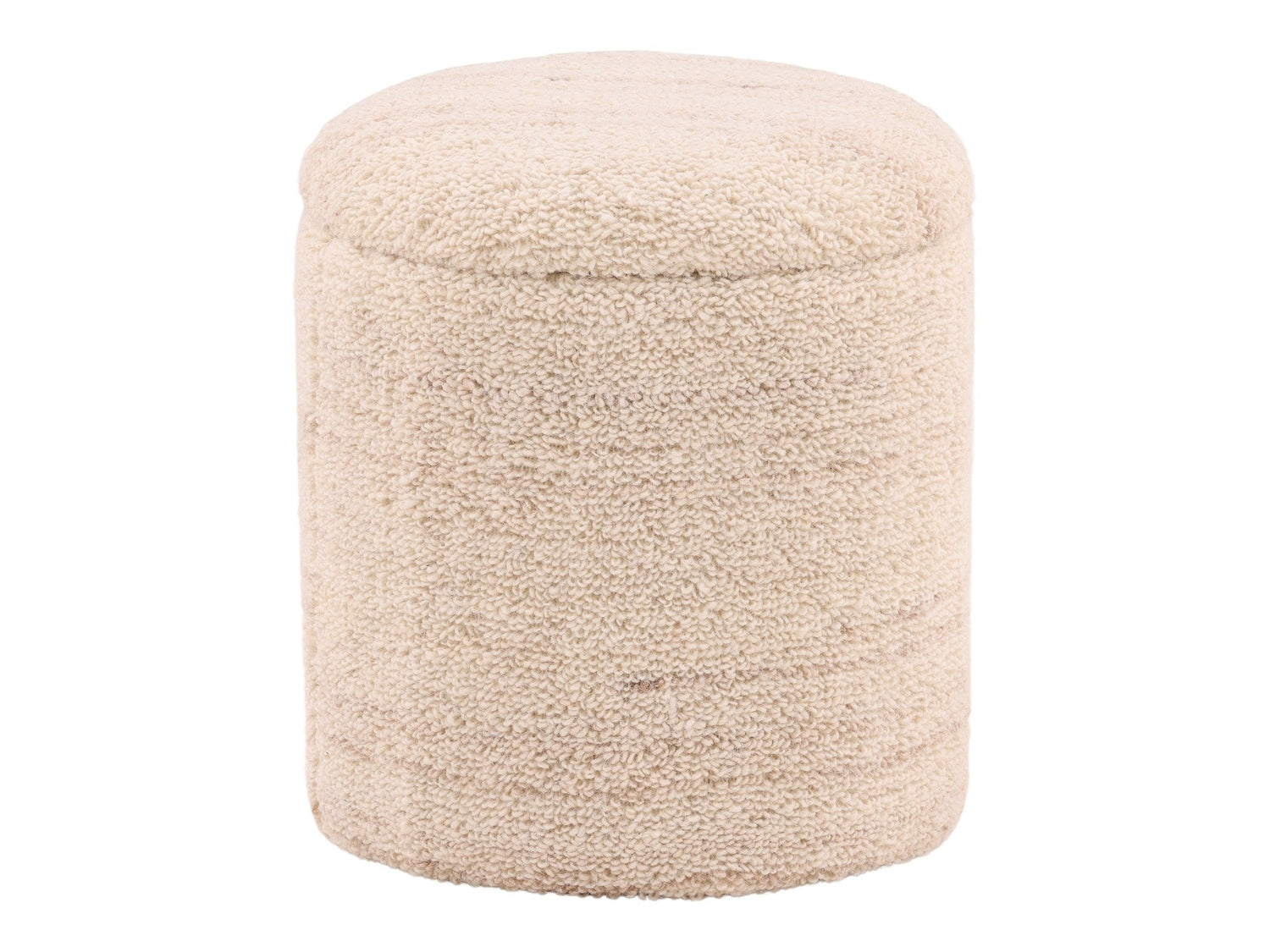 The Kai Stool is crafted from a handwoven wool blend in a serene ivory finish, offering a soft, textured look that complements any decor. Its versatile design makes it perfect as extra seating or as a chic accent piece, adding subtle elegance to your space.
