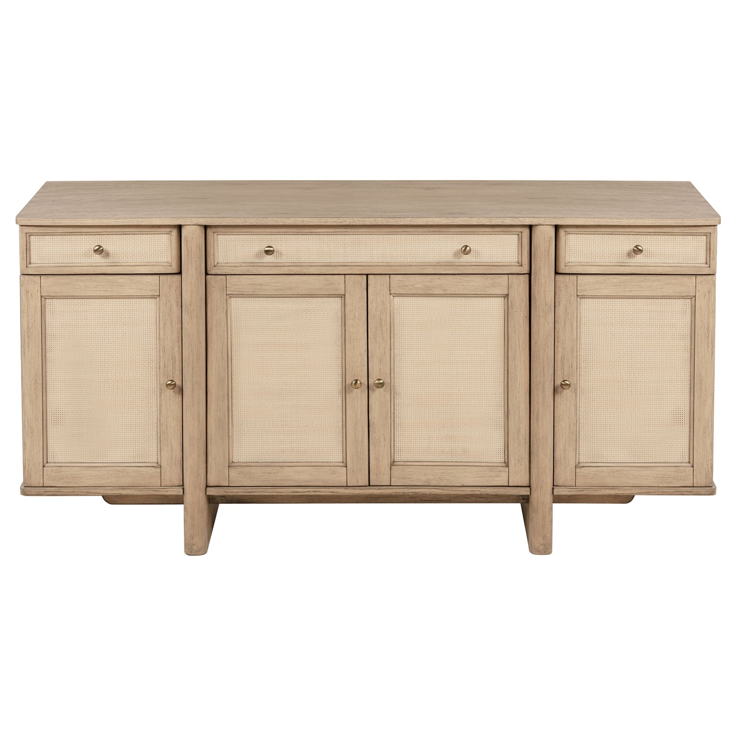 - Sideboard Configuration: Three spacious drawers and three cabinet compartments behind four doors