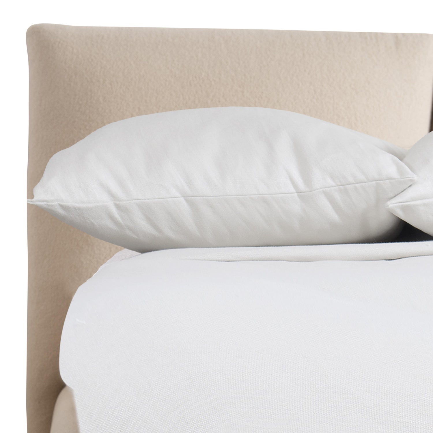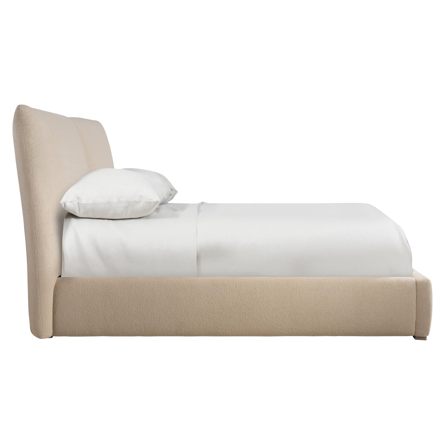 - Fully upholstered footboard and side rails and pillow-style headboard with plush knife edge supported by four ash wood feet in Sandbar finish