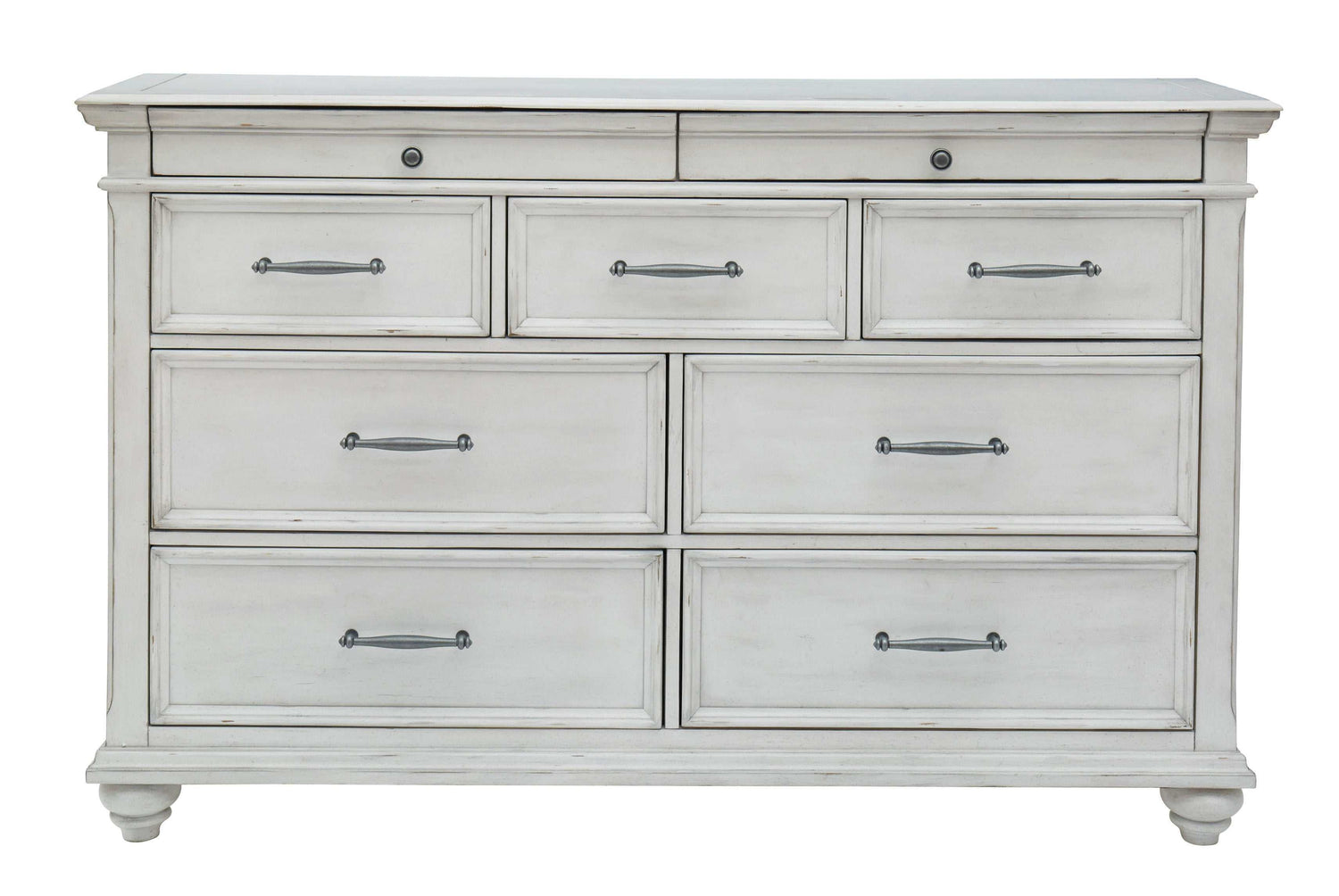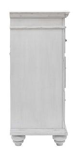 Give your retreat vintage charm with this bedroom set in a beautifully distressed whitewash finish. You'll love the headboard's grand style featuring a picture framed panel. Generously scaled moulding, framed drawer fronts and bun feet enhance the character of this bedroom set—evoking the feel of a quaint cottage escape.