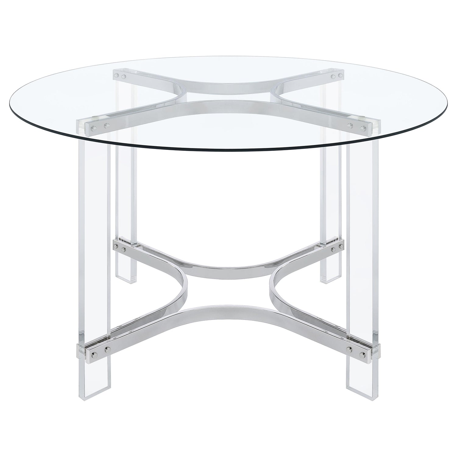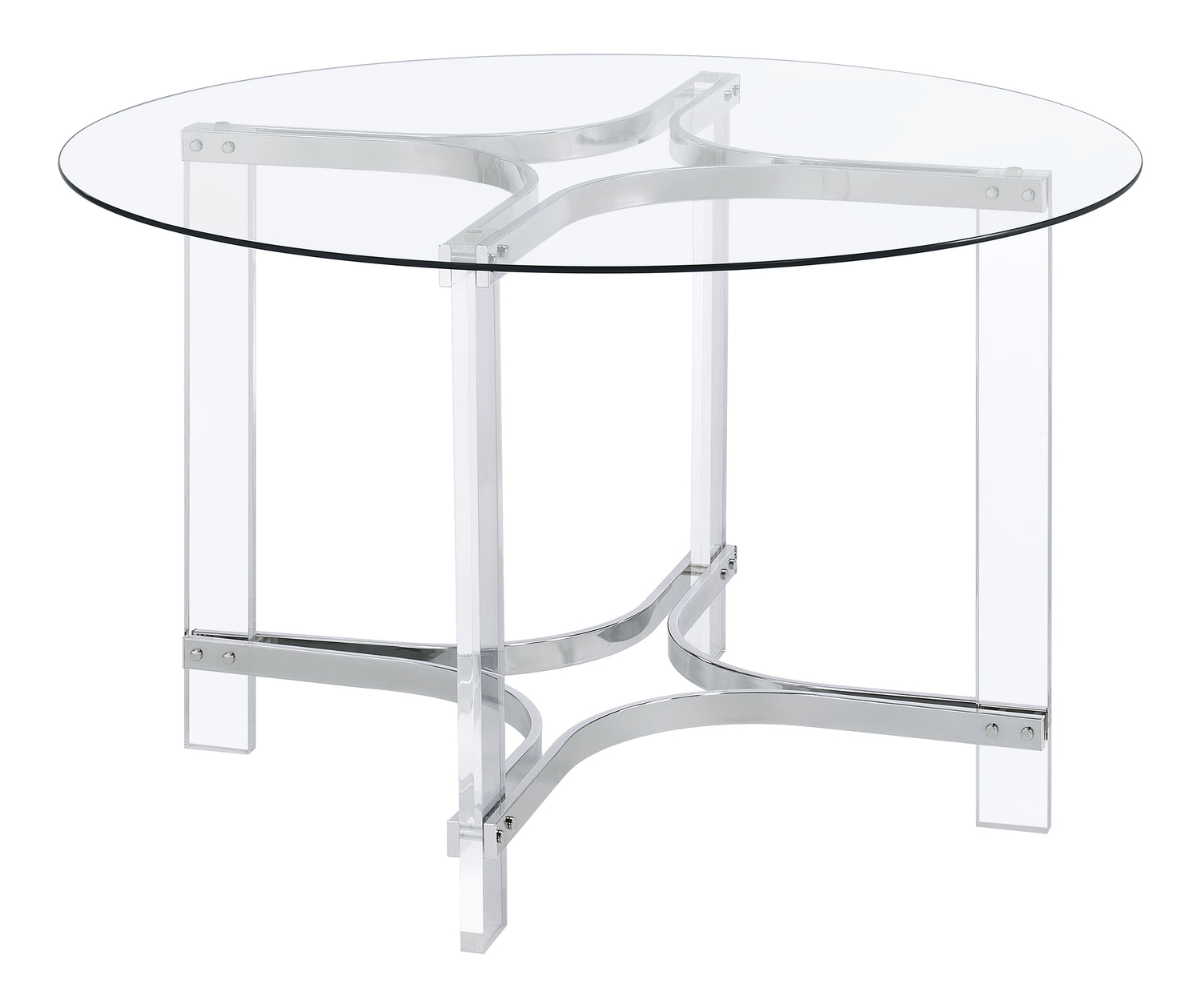 - Item Name: Keeling Chrome 5-piece Round Glass Top Acrylic Dining Set
