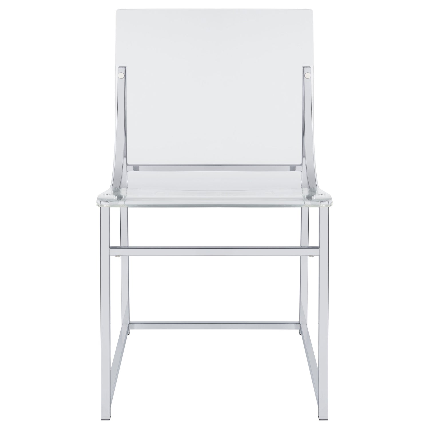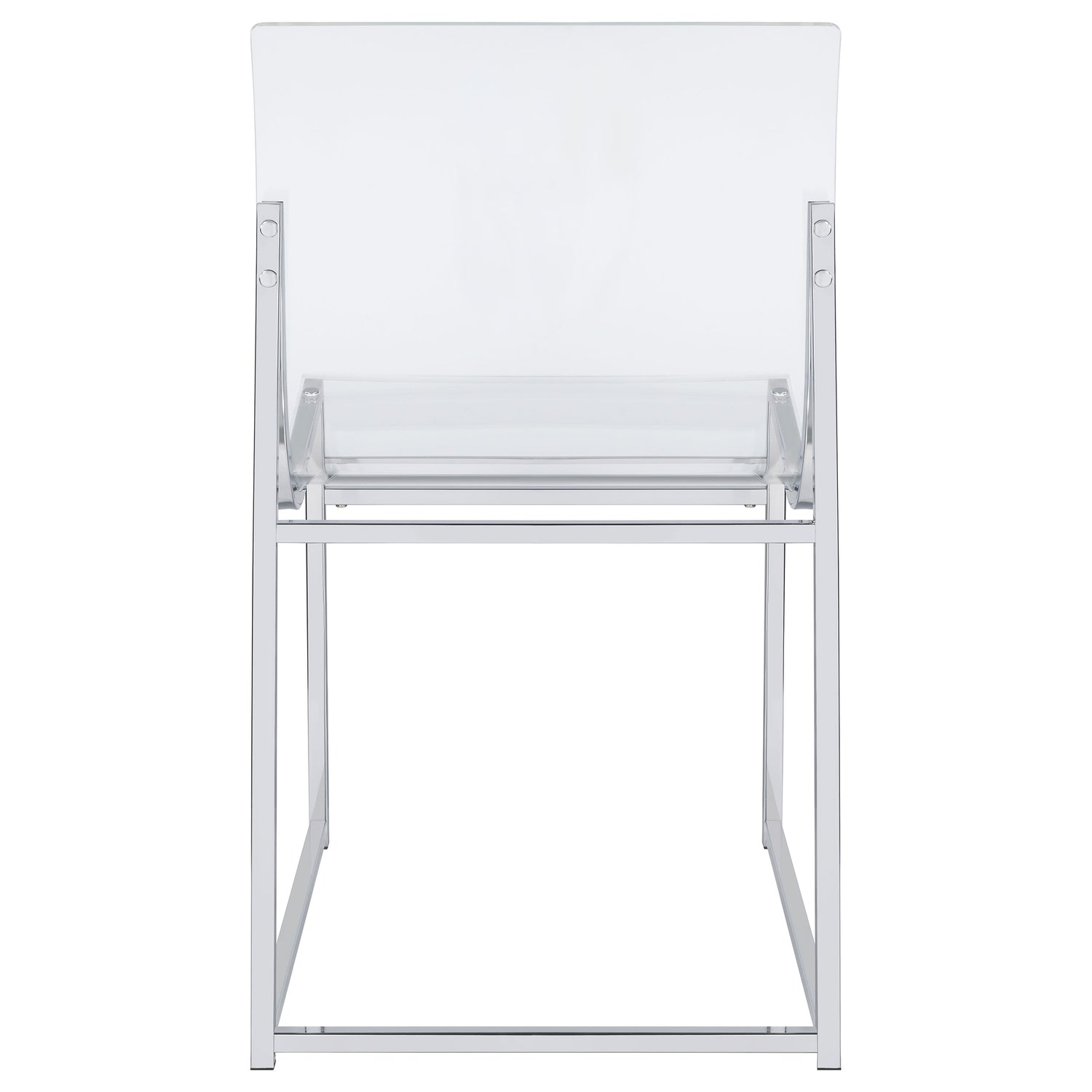 - Chairs feature minimalist clear acrylic seats with graceful curves for comfort,