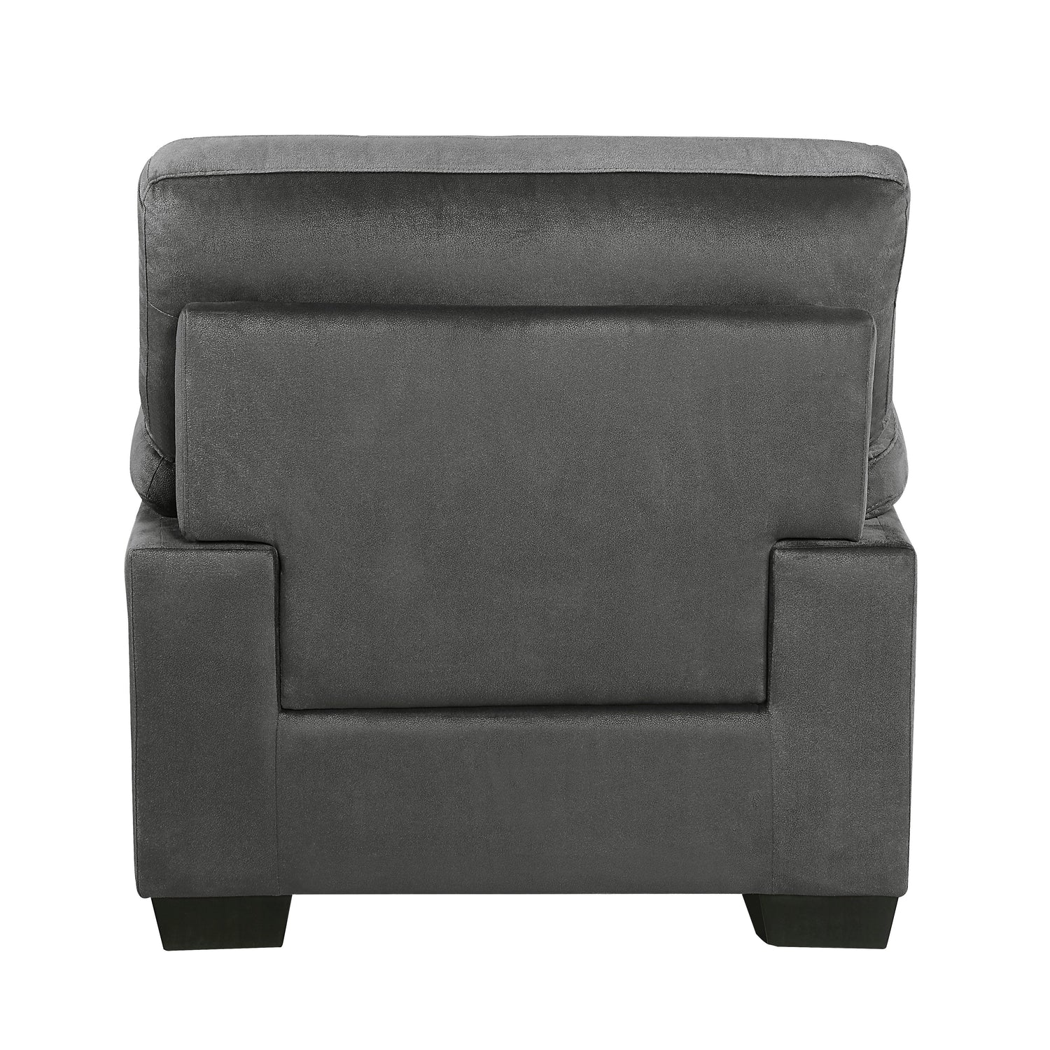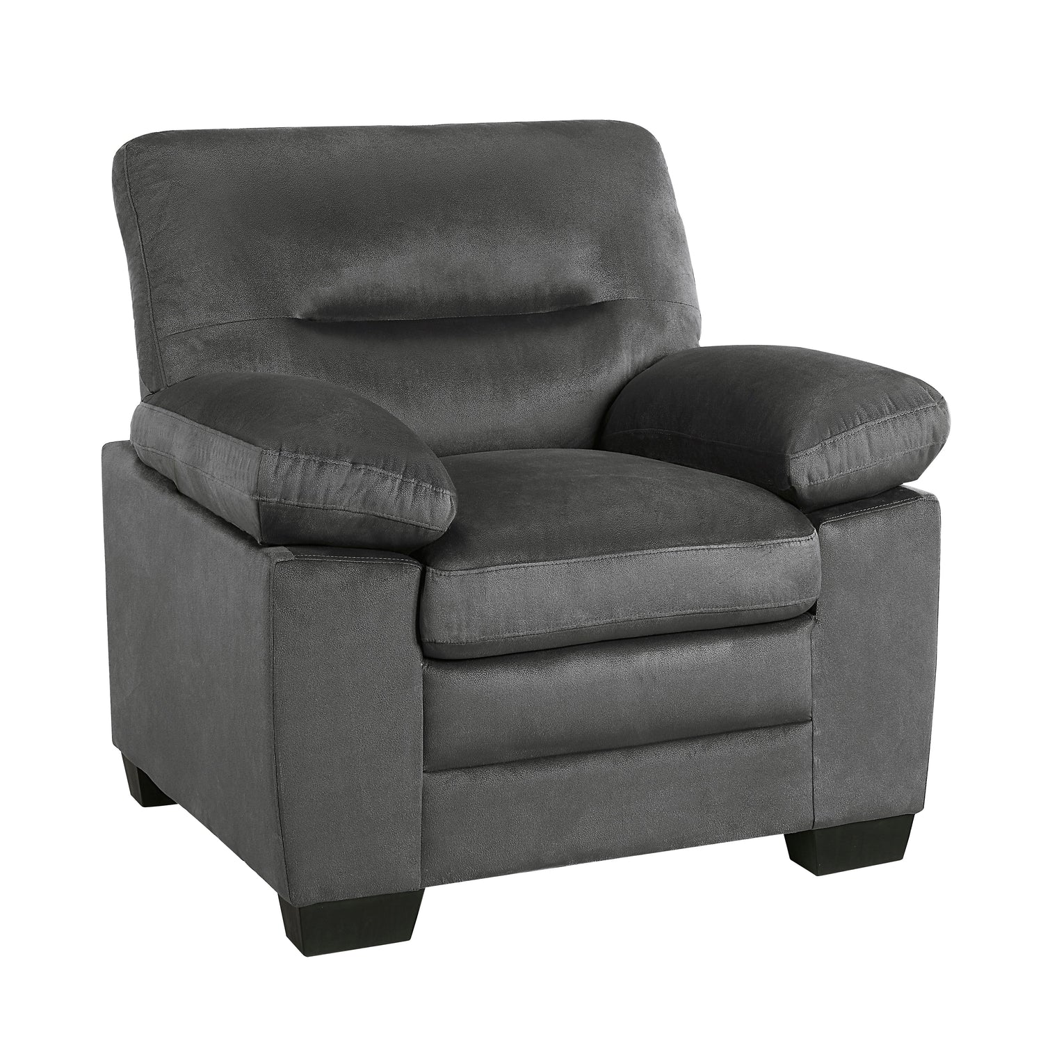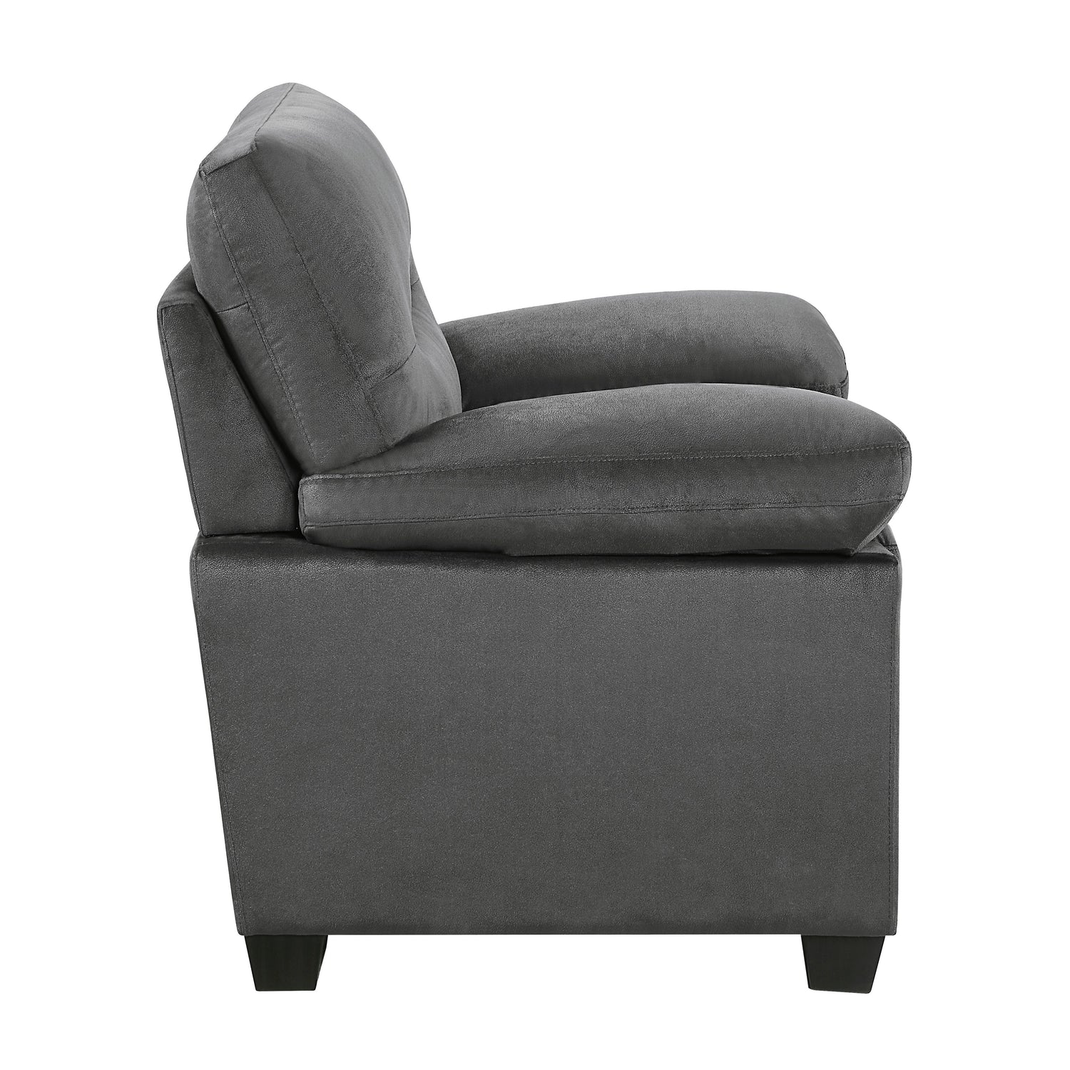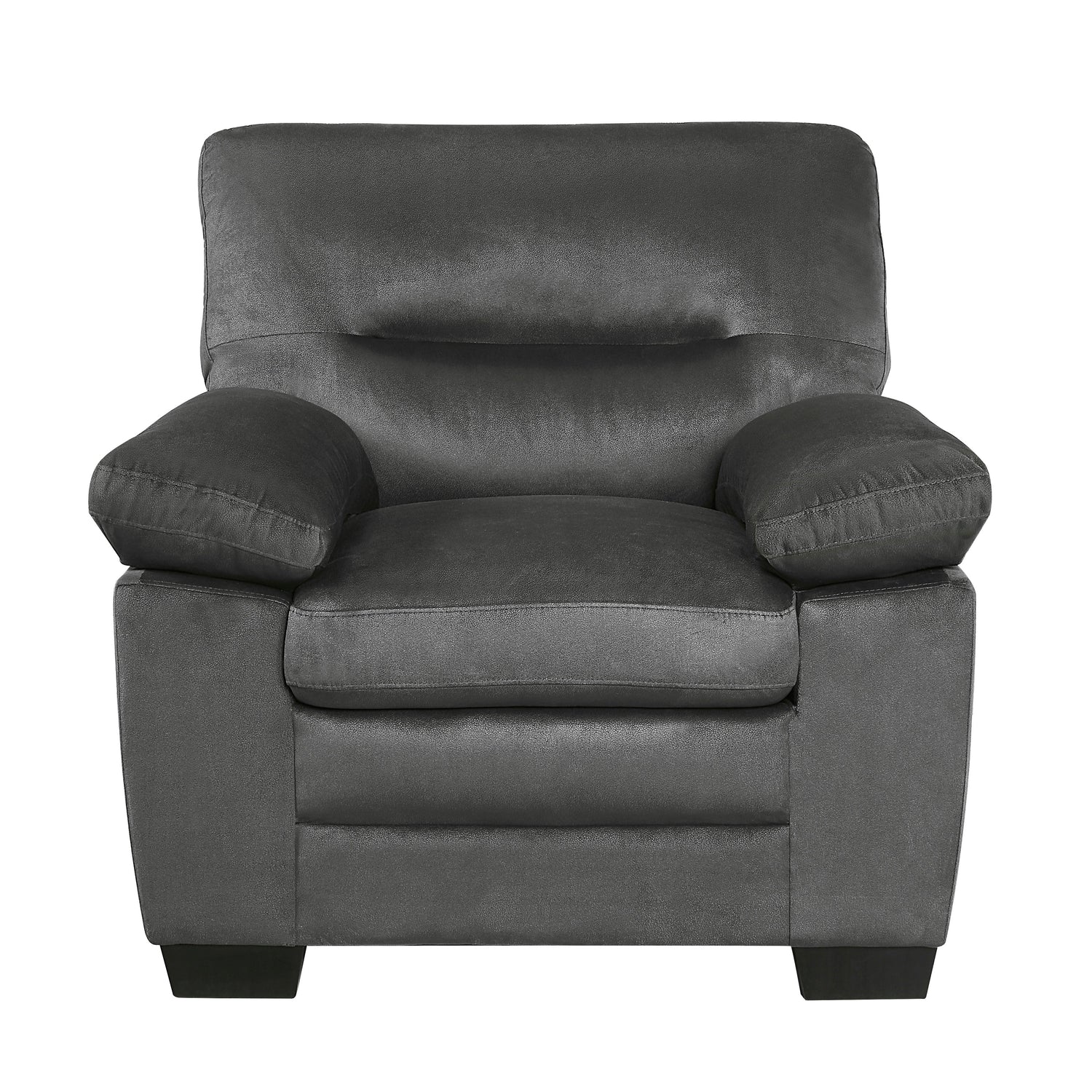 The sleek profile of the Keighly Collection will be the perfect complement to your modern living room. The chair features a dark gray fabric cover for the ultimate decorative versatility, while pillow-top arms and plush seating create a platform that is perfect for your comfortable seated relaxation.