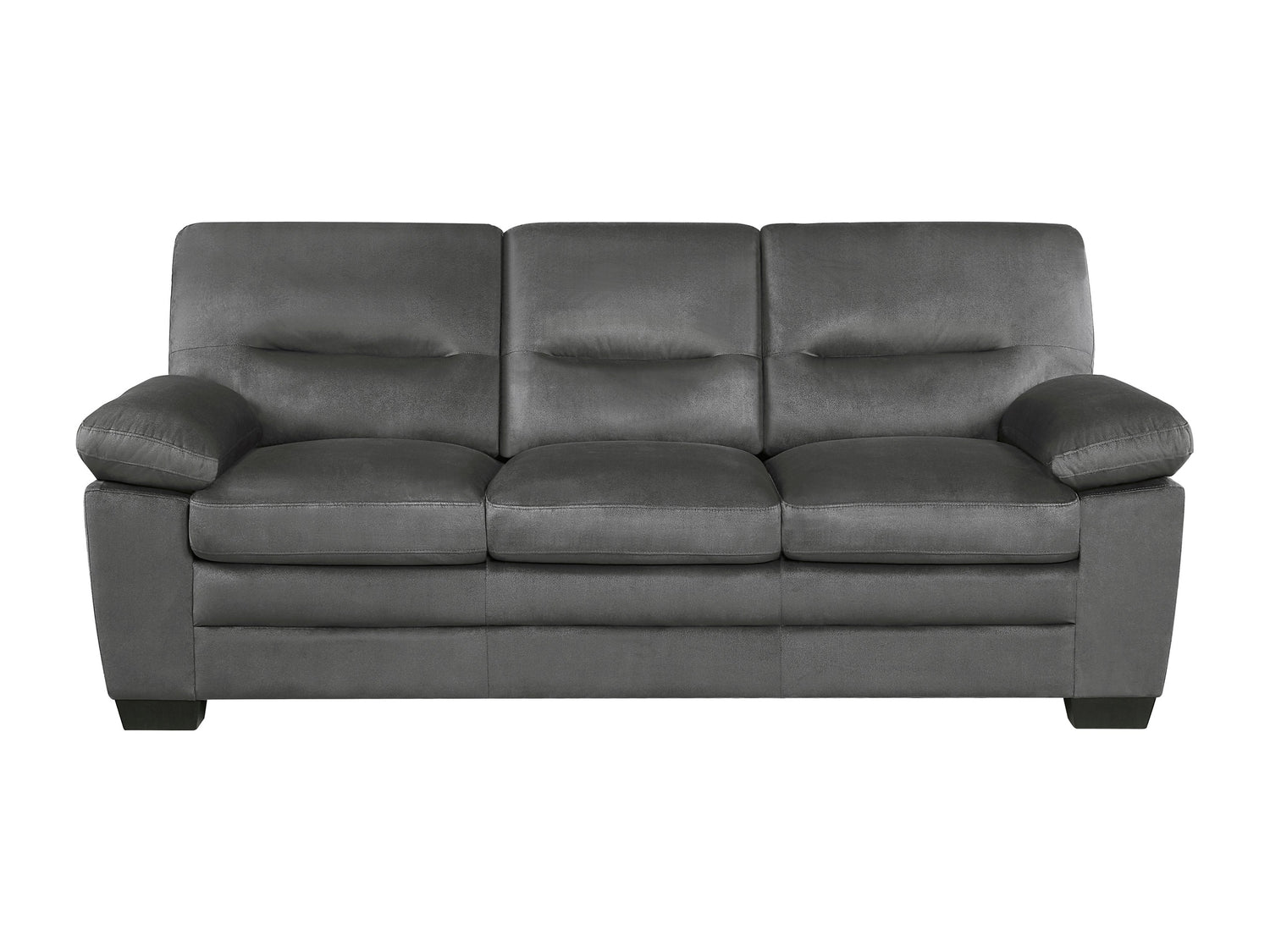 The sleek profile of the Keighly Collection will be the perfect complement to your modern living room. The sofa features a dark gray fabric cover for the ultimate decorative versatility, while pillow-top arms and plush seating create a platform that is perfect for your comfortable seated relaxation.