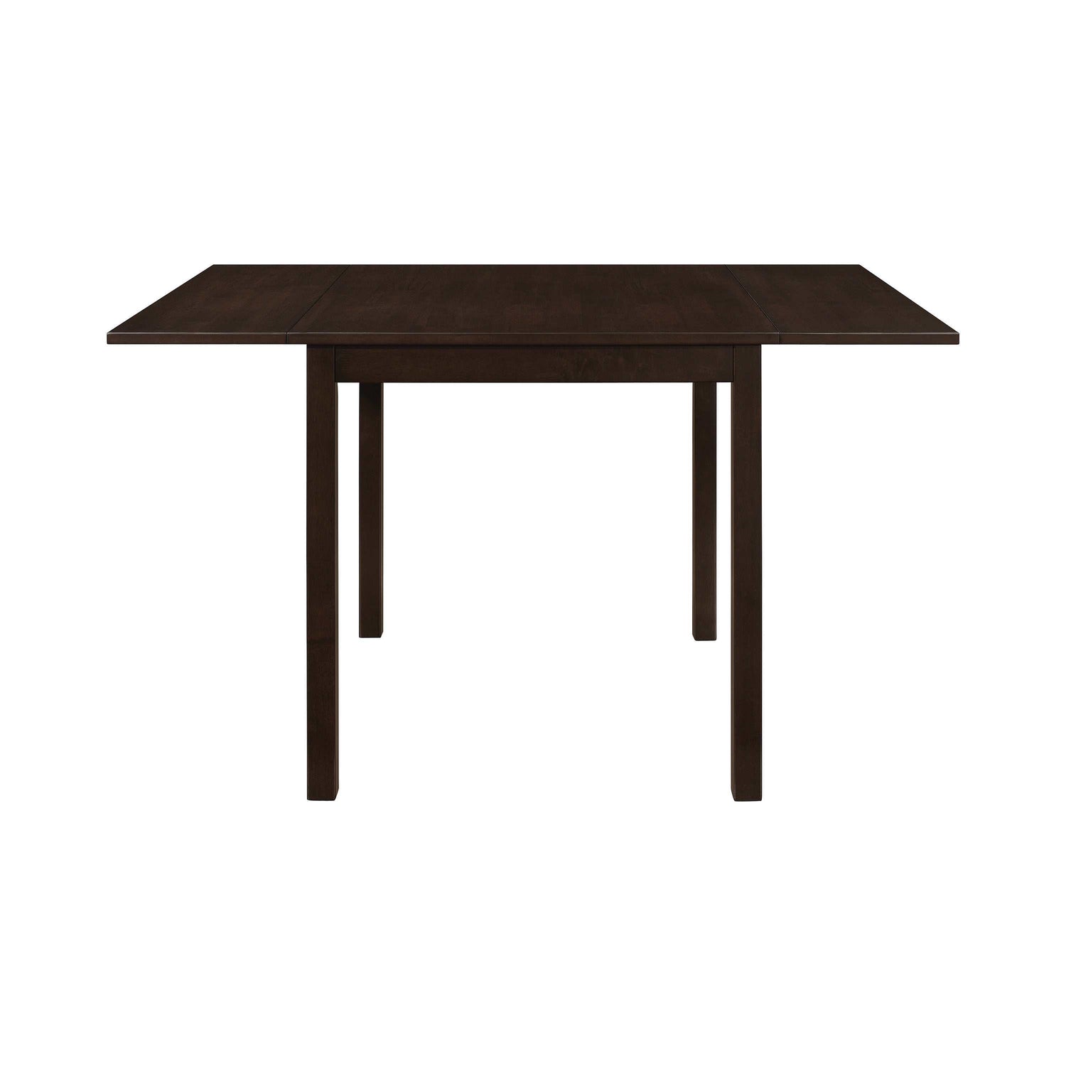Perfect for a small dining room or kitchen nook, this cappuccino dining table features a classic silhouette. The rich and deep finish warms up even the most neutral of spaces. Fold up the table ends to accommodate for guests, or leave them down for a stunning cafe-inspired look. Straight and sleek, the smooth legs offer a clean aura. Decorate with a vase of flowers for a fresh feel.