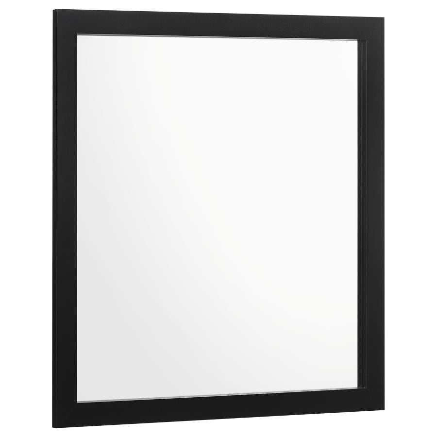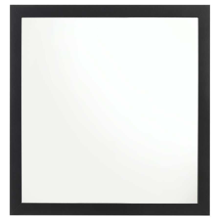 - Vertical, rectangular mirror adds height to the dresser and bedroom walls