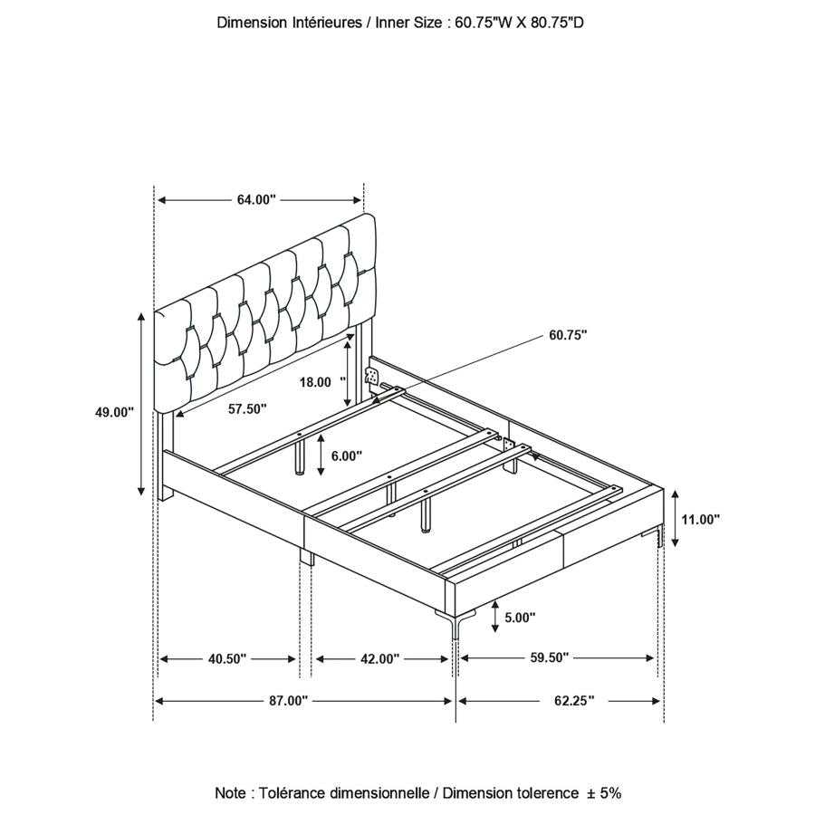 - Upholstered bed with a diamond tufted headboard offers a soft place to lean back and relax