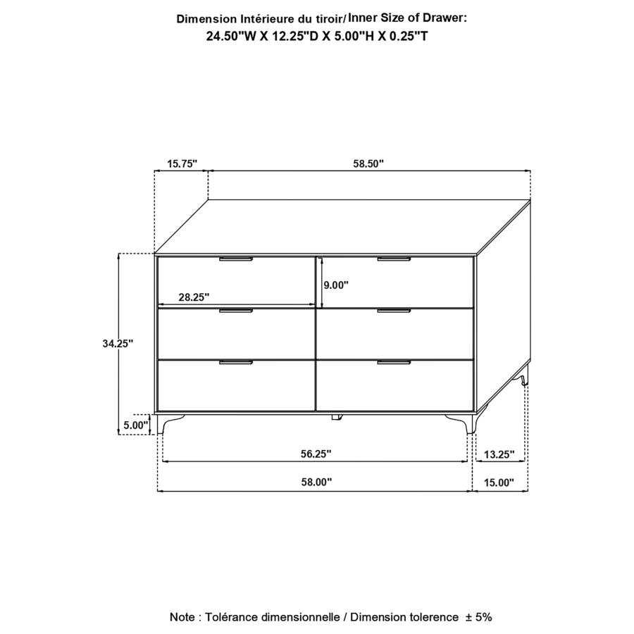 Transform your bedroom into a sophisticated retreat with this modern glam bedroom set. An upholstered bed with a diamond tufted headboard creates a cozy resting place. The smooth, black finish of the two-drawer nightstand and six-drawer dresser lends a chic and clean aesthetic, contrasted only by the gold finished hardware, stylish bracket legs, and bar sized buttons along the headboard. Spacious drawers contain and organize all your garments and linens. A tall, rectangular mirror with a black frame offers a final touch, creating a stylish dressing area.