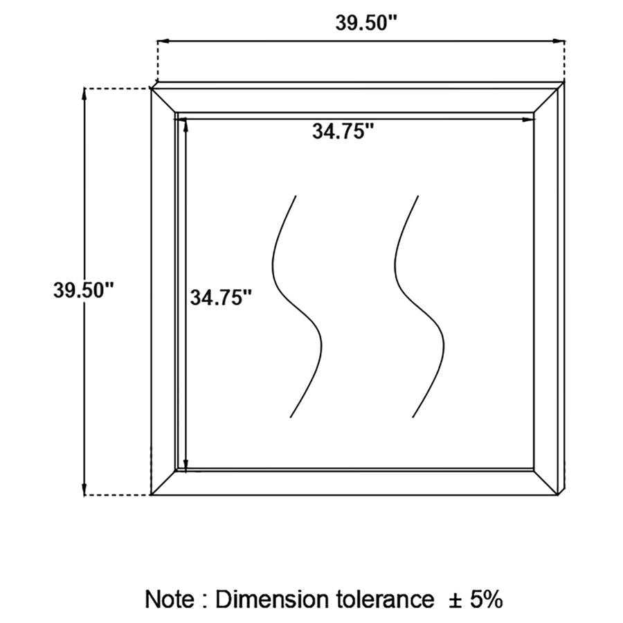 - Width: 39.5" Depth: 1" Height: 39.5"