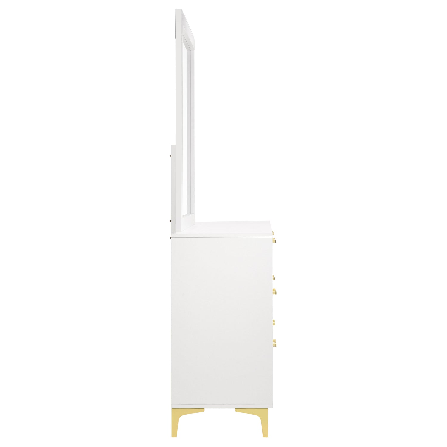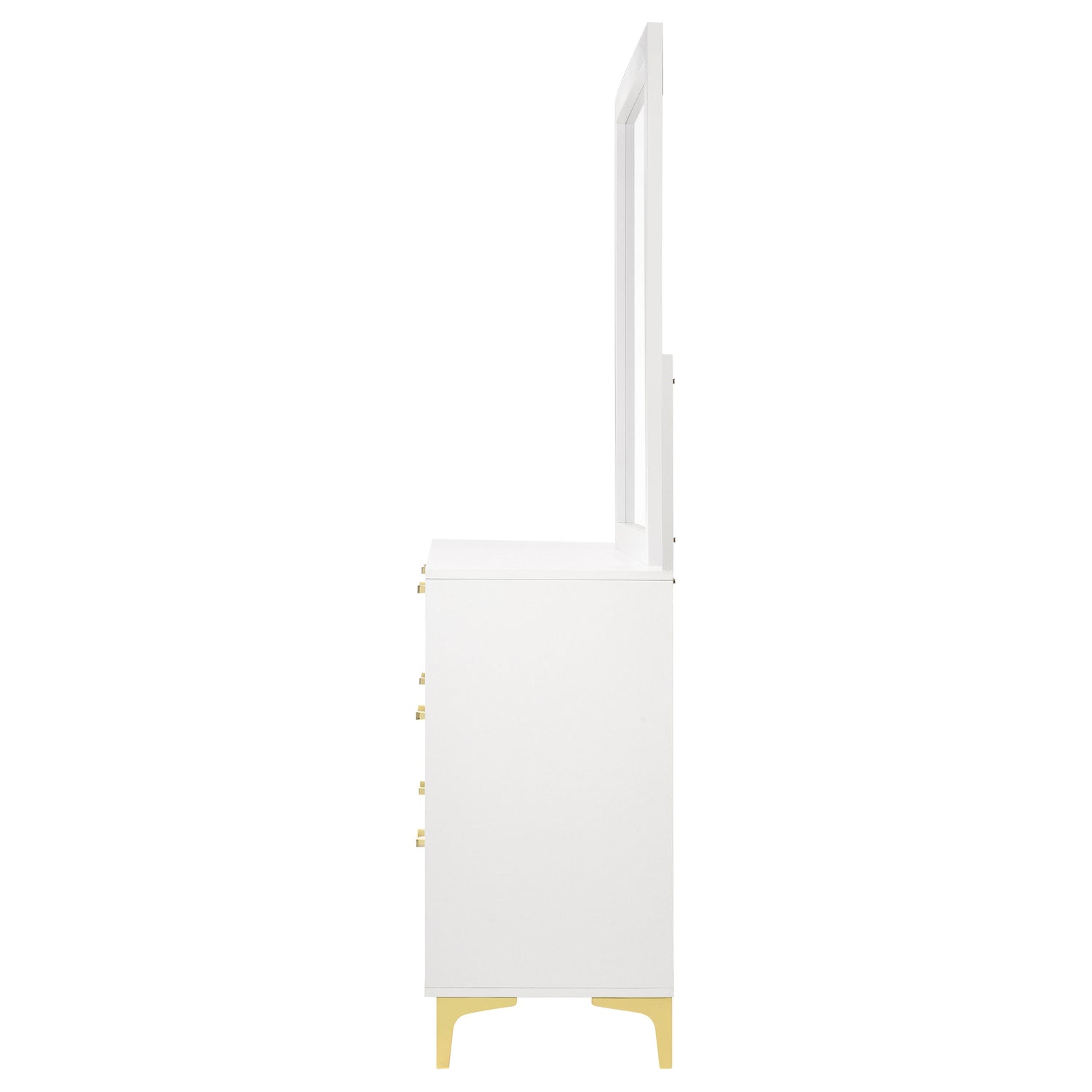- Includes: One (1) dresser and one (1) dresser mirror- Modern glam six drawer dresser with gold