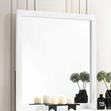 Dress up your bedroom with this elegantly understated contemporary mirror . Framed in a rectangular shape, this mirror rests on top of a dresser and offers height to focal walls. The flush and smooth frame presents a simple minimalist surface, elevated by the crisp, white finish. The straight, flush frame offers a clean finish, perfect for contemporary bedroom retreats. Place this rectangular framed mirror in your bedroom when you need to create a more formal vanity.