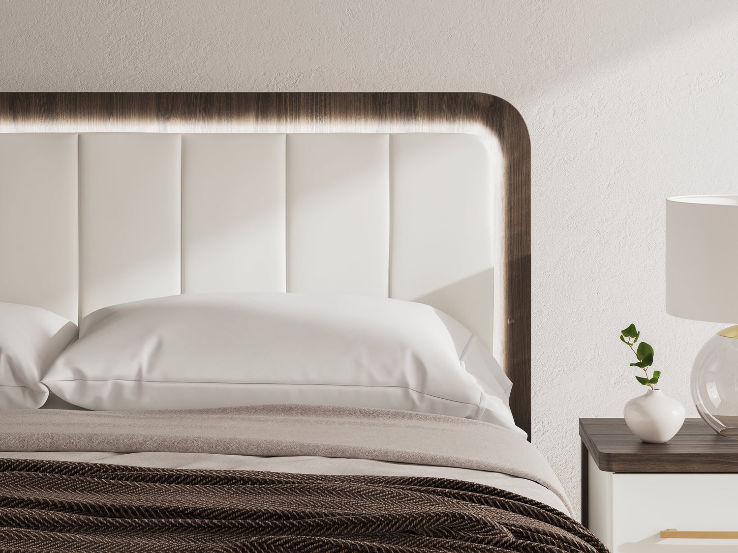 - Two-tone finish (dark brown finish over replicated walnut grain; matte white finish)