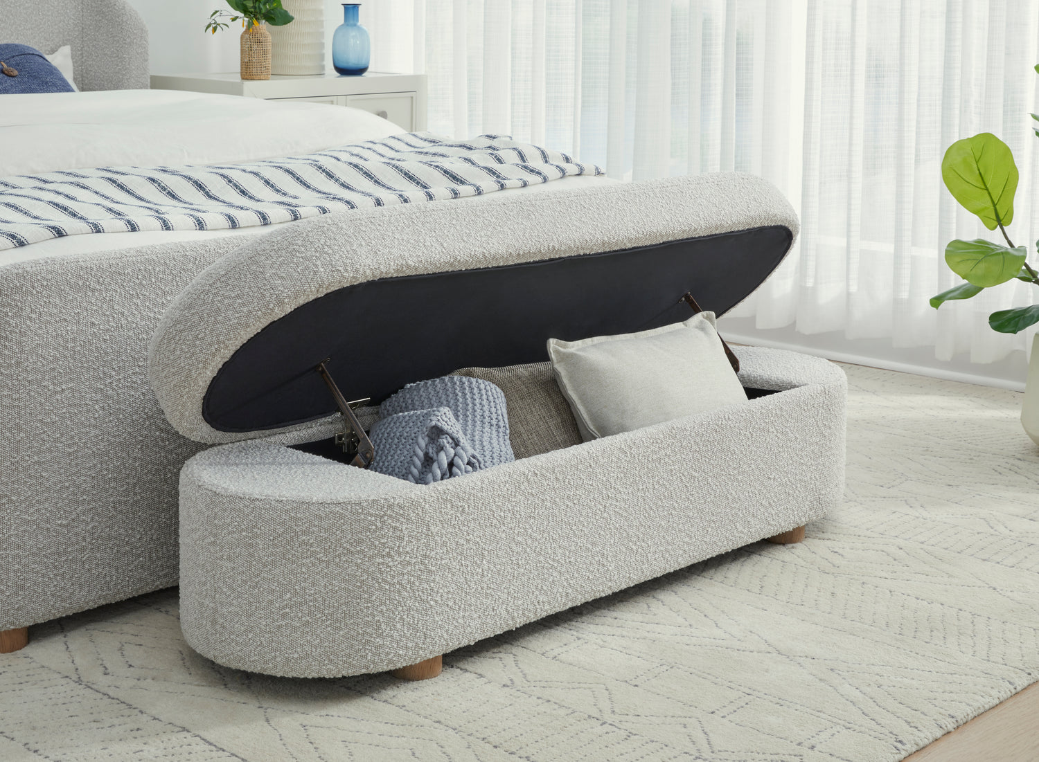 - Item Name: Kiki Upholstered Hinged Storage Bench in Cotton Ball Boucle