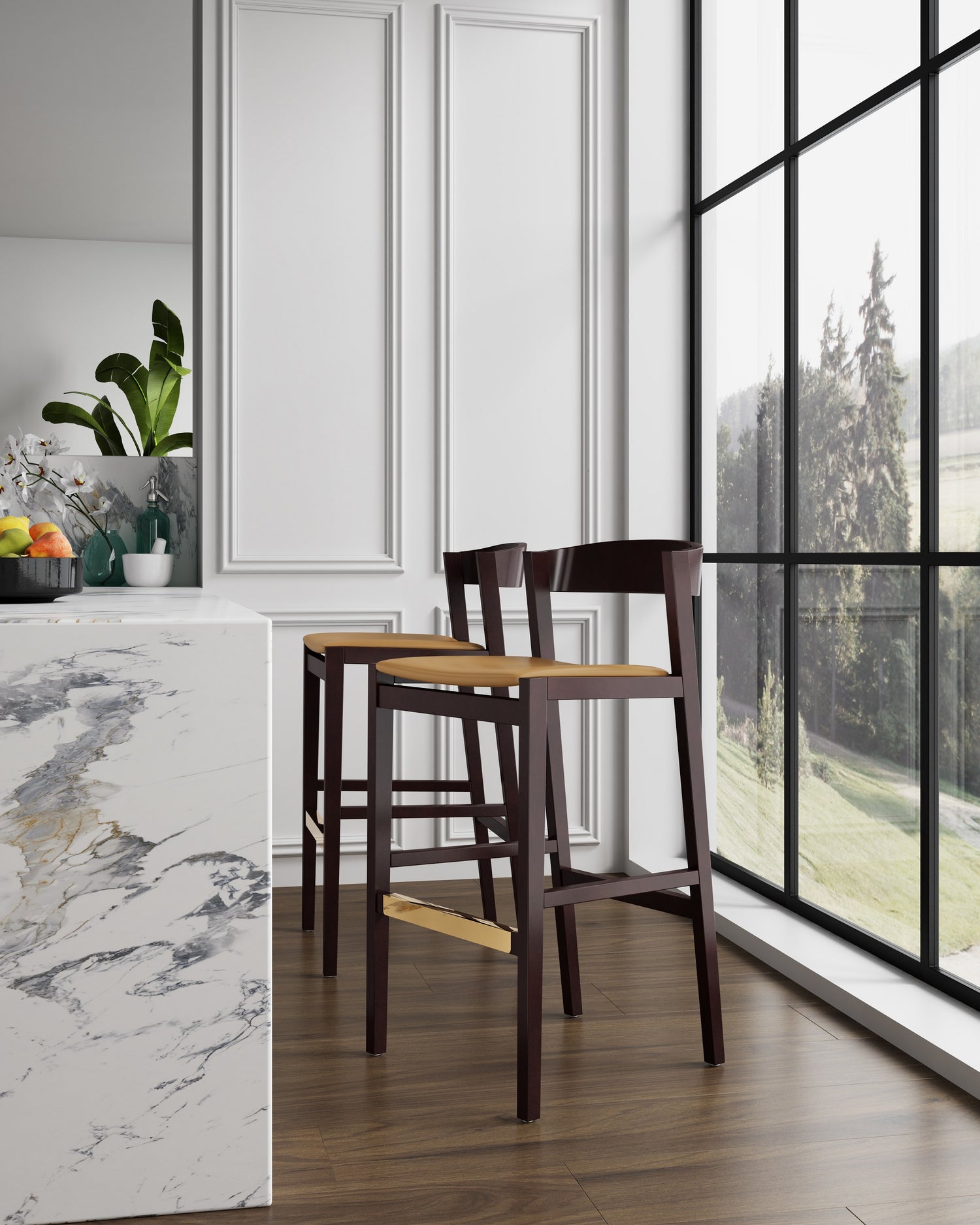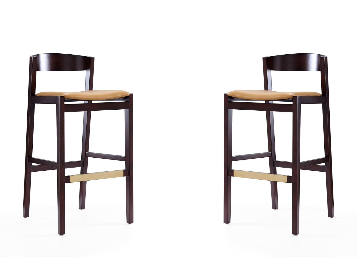 - Item Name: Klismos Barstool in Camel and Dark Walnut (set of 2)