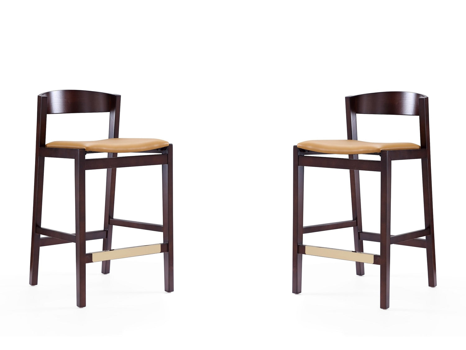 Klismos Counter Stool in Camel and Dark Walnut (set of 2)