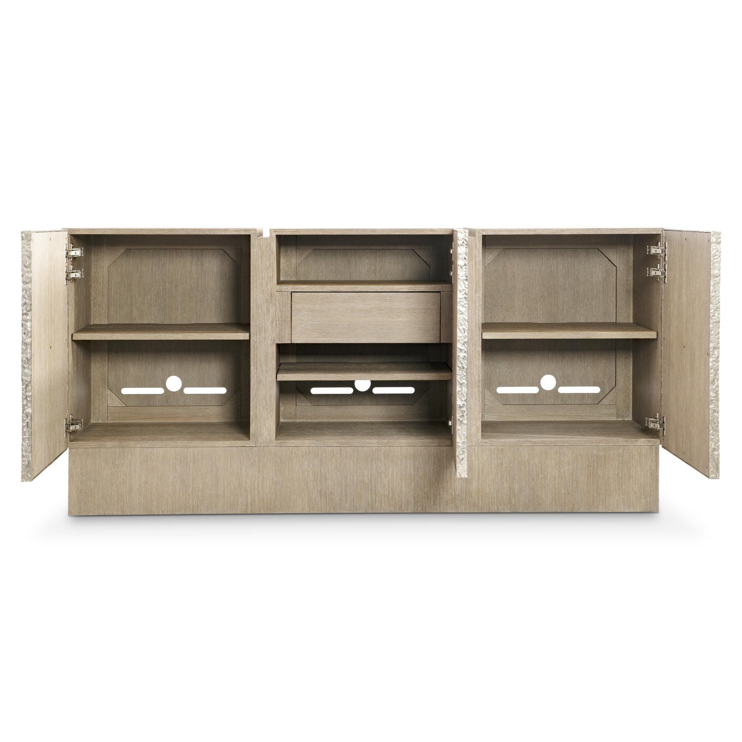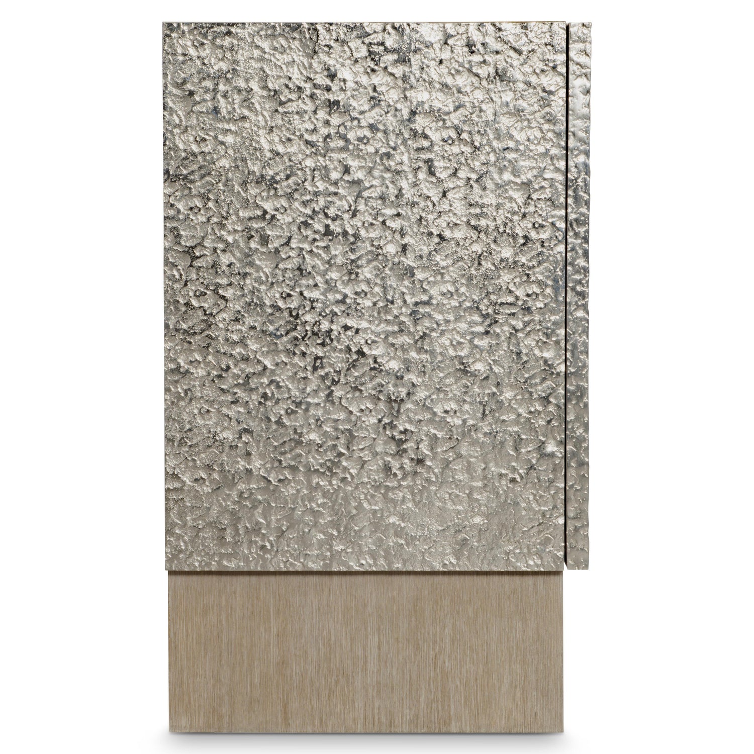 - Three pull-to-open doors with textured aluminum overlay in Light Bronze finish
