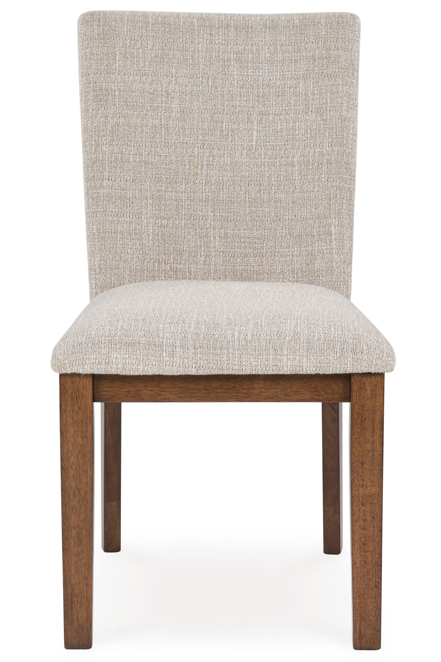 Experience worry-free living with this dining package. Designed to effortlessly blend casual and refined aesthetics, the rich brown butcher block veneer exudes a modern, relaxed vibe you'll love. And the washable Next-Gen Nuvella™ performance fabric handles life's little messes with ease. Styled to comfortably seat eight, this set makes room for one and all.
