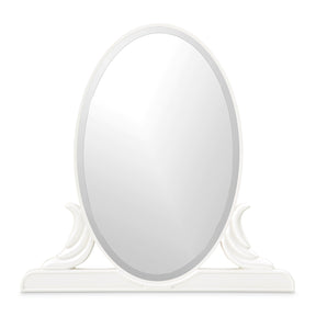 Elevate your space with the elegance of the La Marisia Vanity Mirror. Its gracefully curved frame and beveled mirror enhances its sophisticated presence, reflecting both beauty and refinement. Sculpted accents on each side add an artistic touch, making it a statement piece in any setting. While designed to sit atop the vanity, the included hanging bracket offers the versatility to display it anywhere in your home.