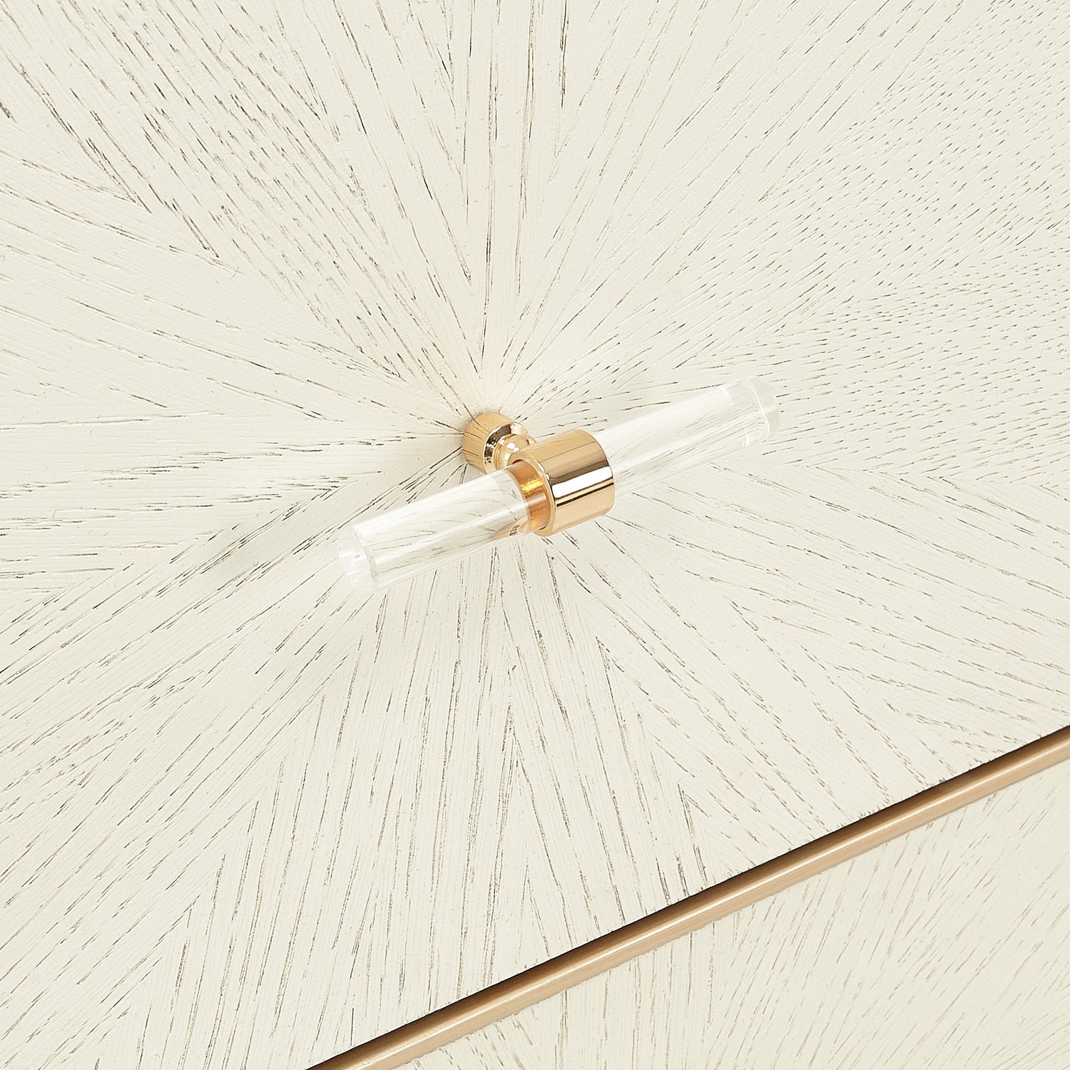 - Acrylic and Chardonnay Gold Pulls: Elegant jewelry-inspired hardware that adds brilliance to the design.