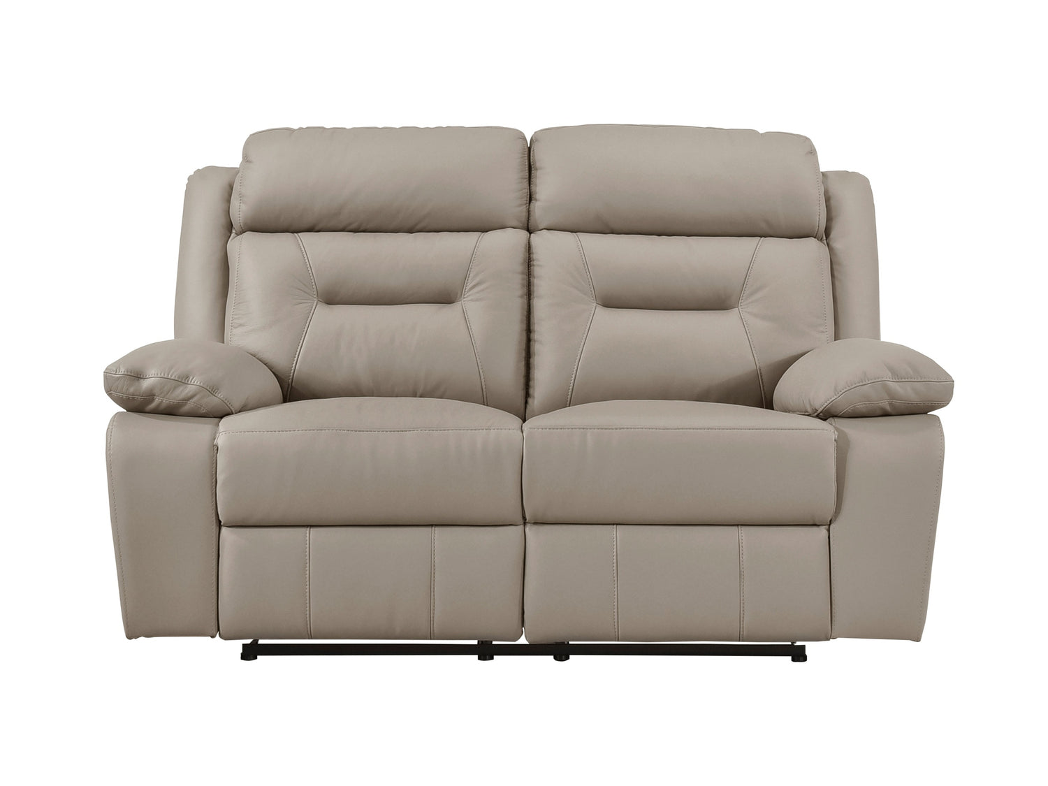 Designed with stylistic versatility and comfort in mind, the Laconia Collection’s addition to your home’s casual living room provides a comfortable gathering spot for your family and friends. The reclining ends of the love seat are engaged with a pull of the side mounted tab. The transitional frame of the love seat is covered in 100 percent top grain leather where the body touches, with faux leather covering the remaining areas, its latte hue complementing your home’s décor.