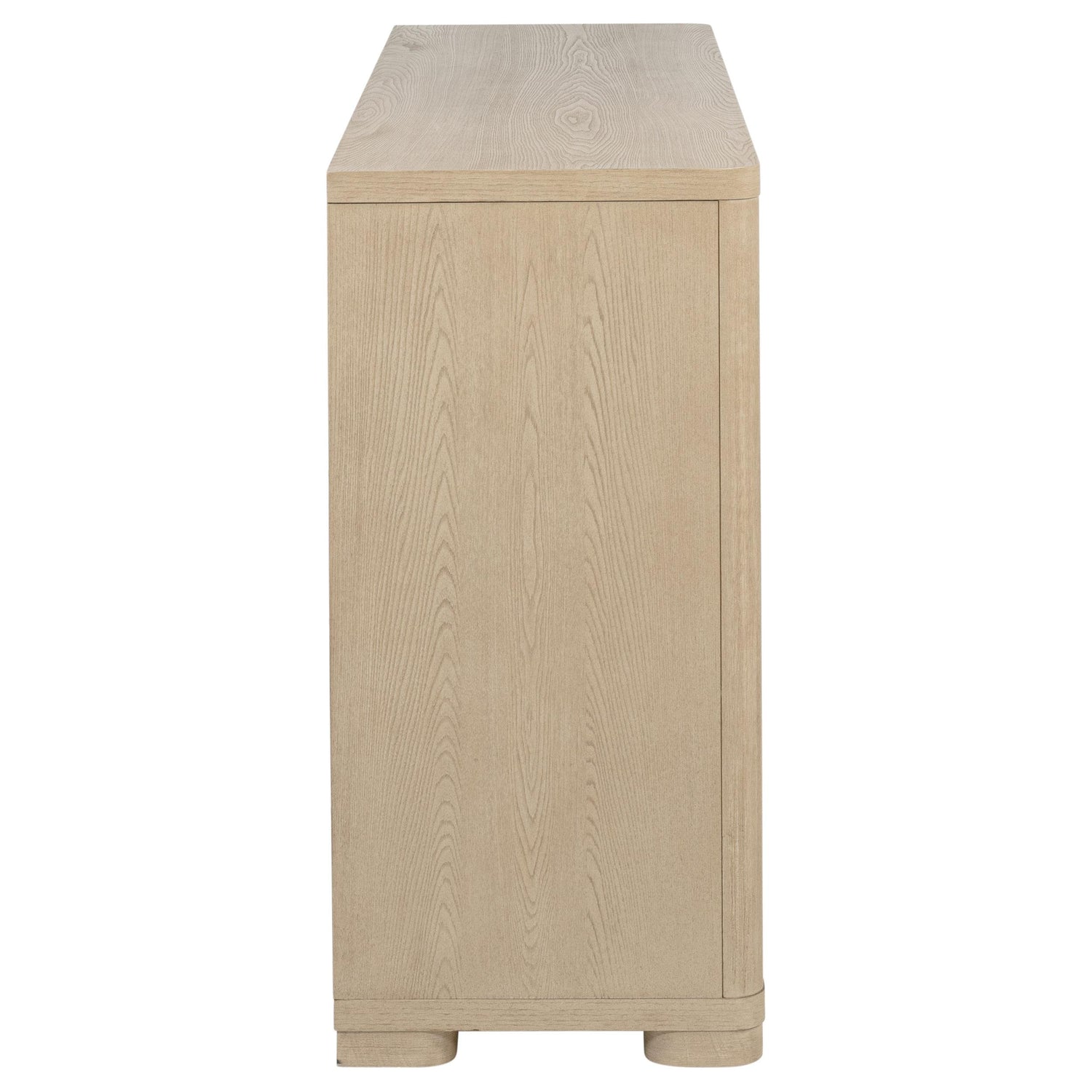 - Six-drawer dresser in a light elm finish for a refined, contemporary aesthetic