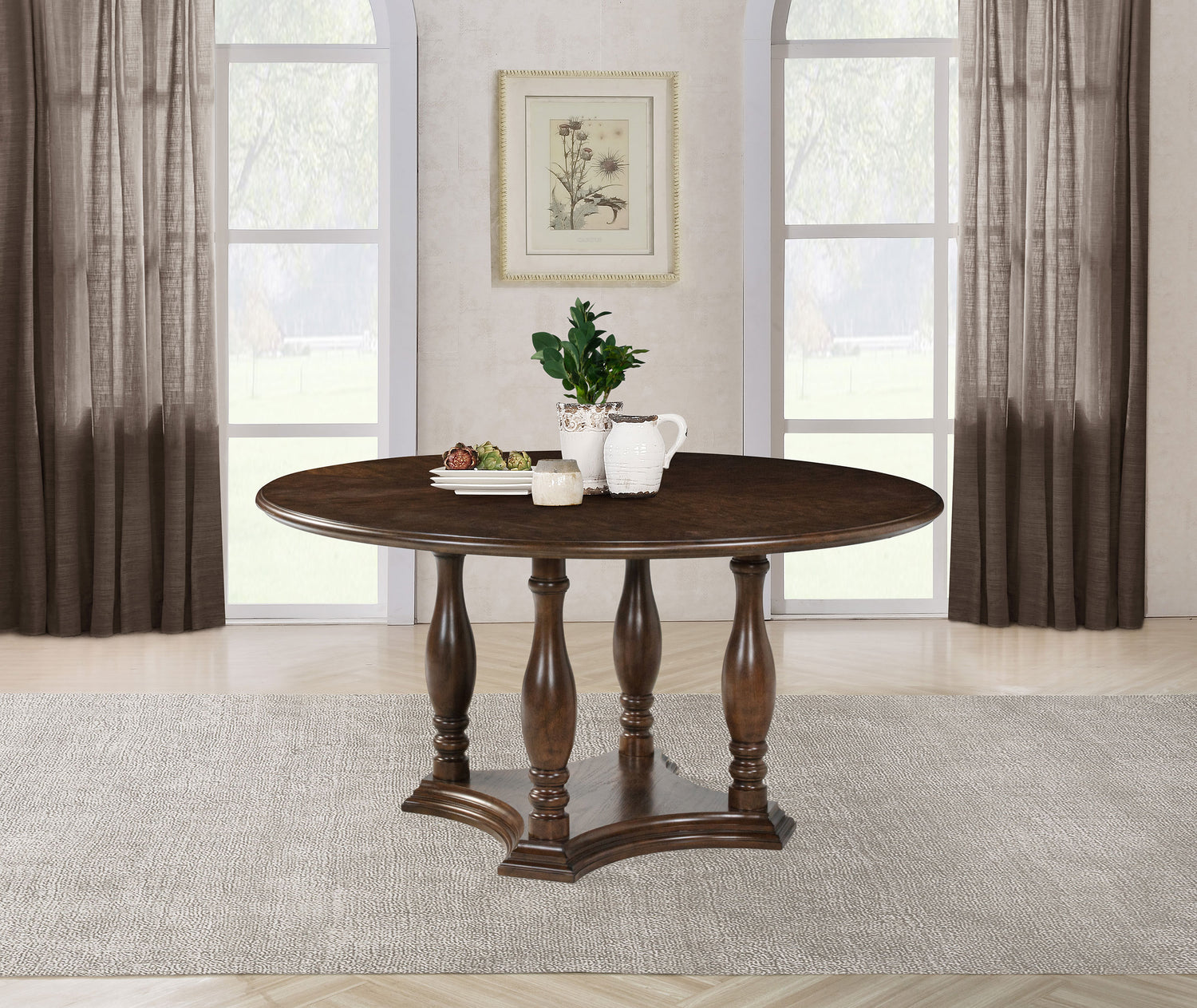- Includes: One (1) dining table- This traditional round dining table delivers refined but approachable aesthetics to your home
