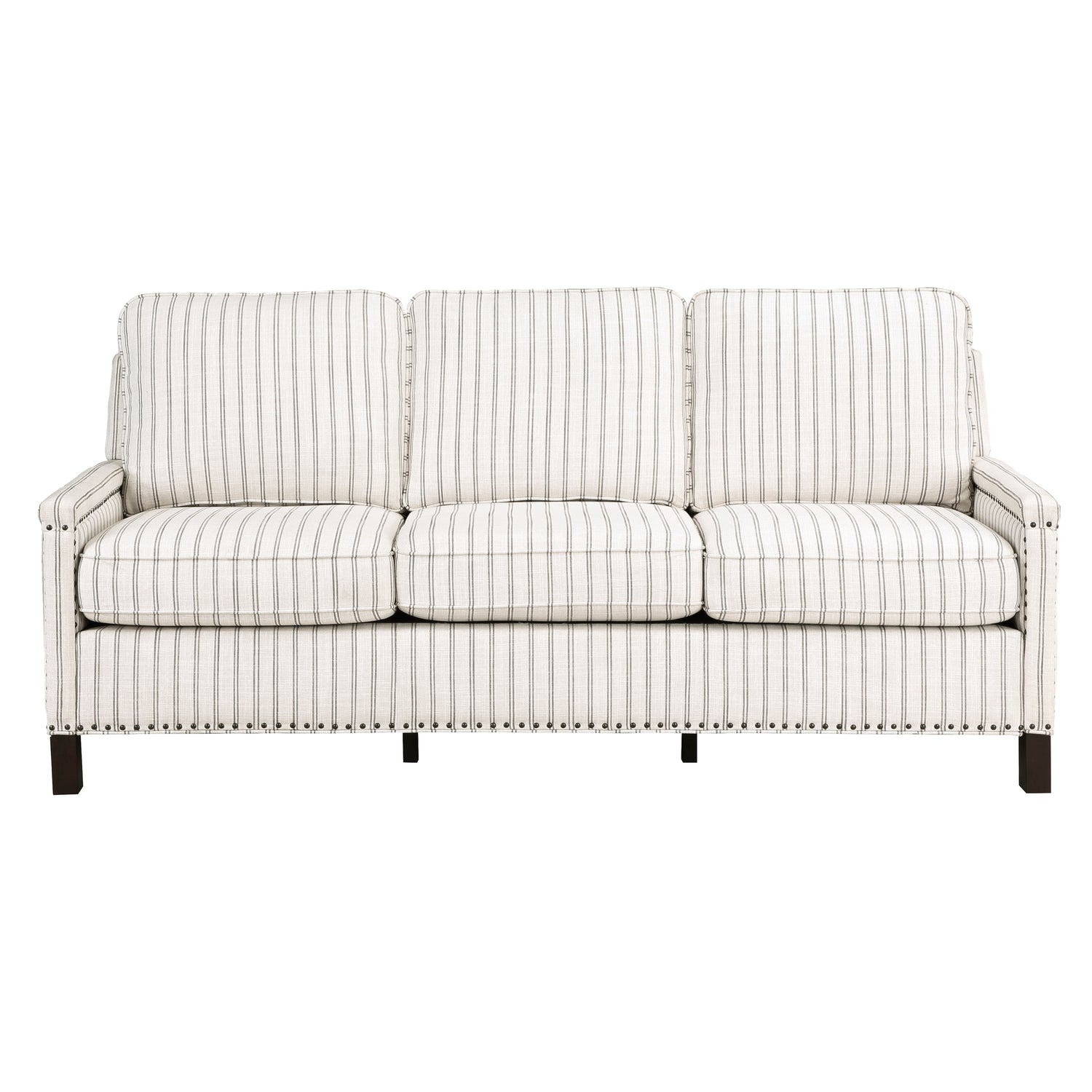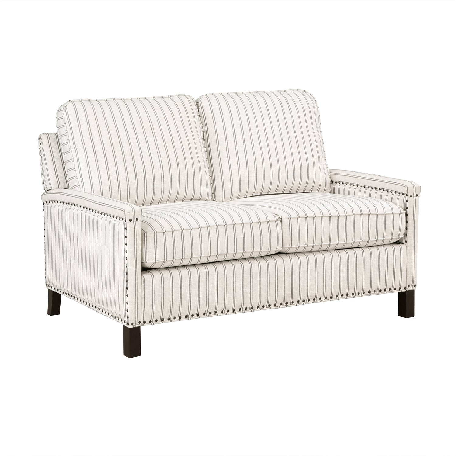 Traditional accents abound in the design of the Landrum Collection, their understated elegance making for classic addition to your living room. Nailhead trim and dark brown finished solid wood legs complement the striped textured fabric that covers the love seat and sofa. The reversible backs and seat cushions of the seating group are perfect for your active home.