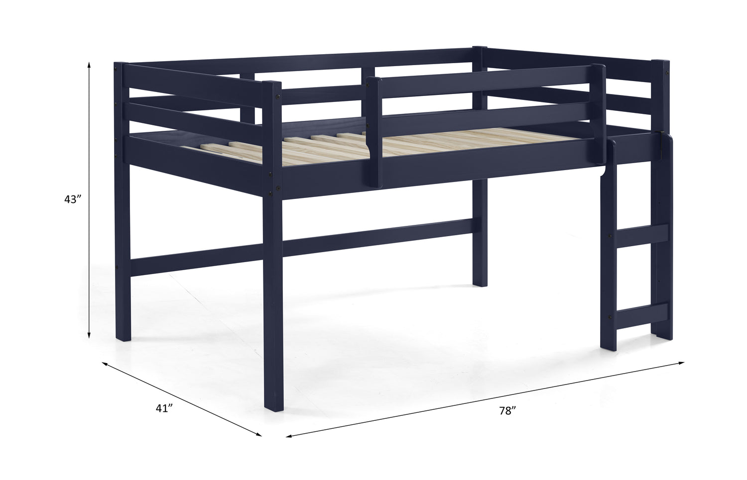 Flexible design with uncluttered, clean lines allows your children to unleash their creativity. Sturdy wooden frame with slat system keeps the mattress in place to provide a safe sleeping environment for kids. Spacious space underneath is extremely versatile for an extra bed, play space, or storage use. A reversible ladder is great for space configuration. Add some playful and creative ideas to Lara Twin Loft Bed for a one-of-a-kind kid's bedroom.