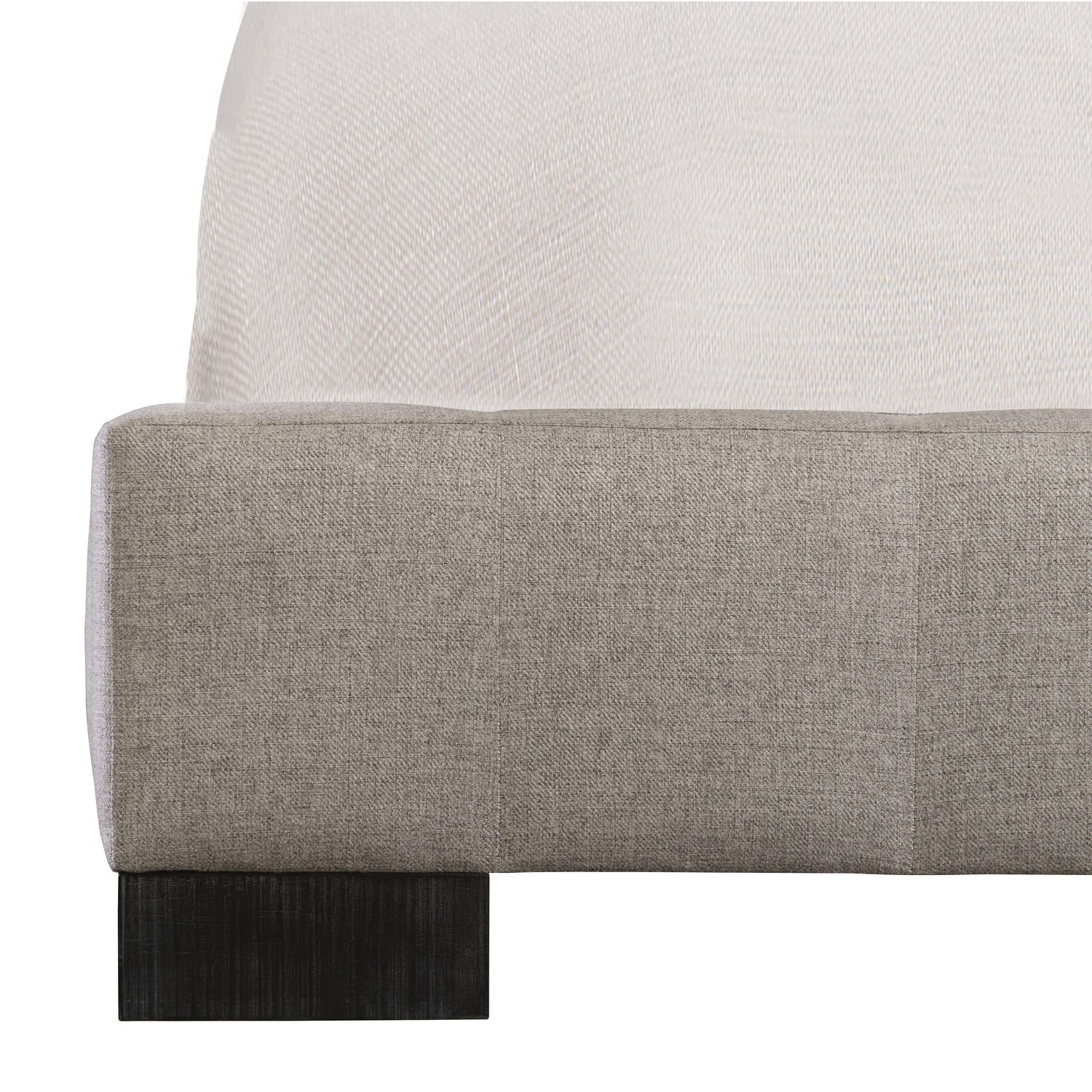 - Upholstered headboard, footboard and side rails with stitched, lightly tufted grid pattern