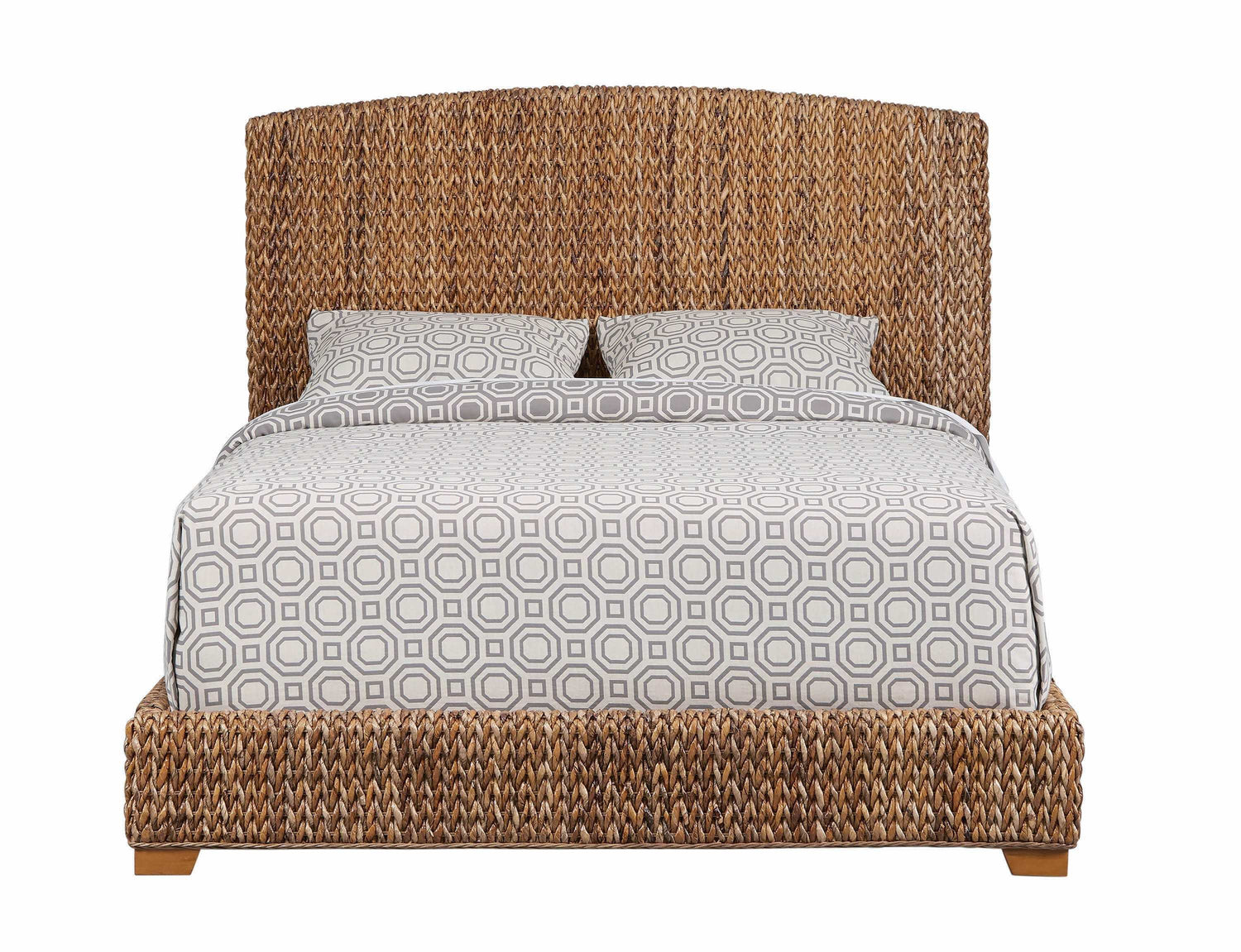 The tropical style bed from the Laughton collection is a handsome addition to the bedroom. Its frame is expertly crafted with mahogany solid wood and plywood for years of reliability. The bed is lovingly embellished with hand-woven banana leaf upholstered in an amber finish. It imparts a warm, inviting look that's sure to please. This bed is the perfect ambiance for resting and enjoying mornings and evenings to the fullest.