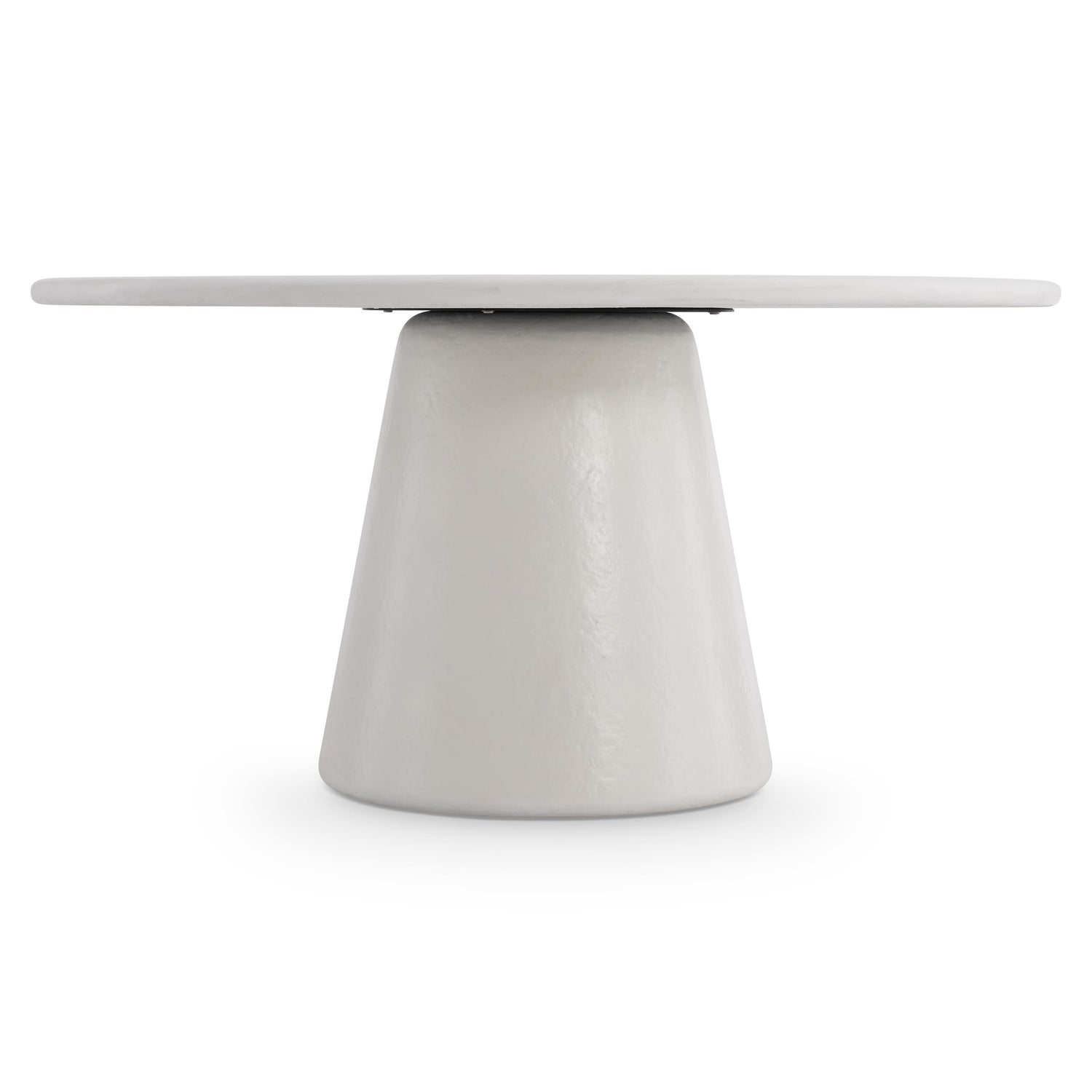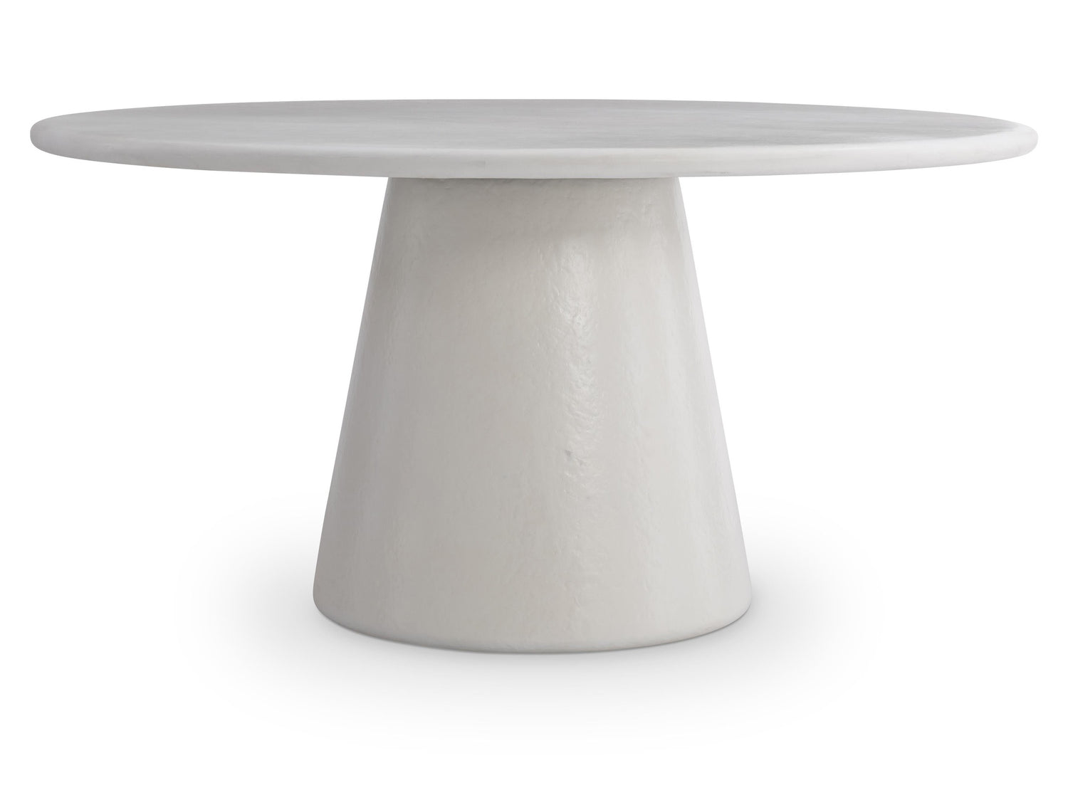 - Glass-reinforced concrete round 60" top and conic pedestal base, both with plaster texture in Quarry finish