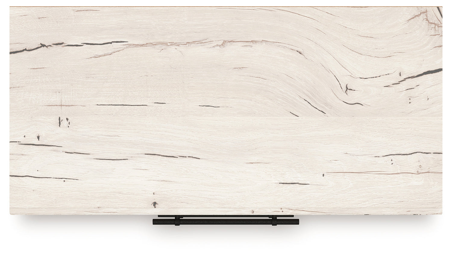 - Rustic white finish over replicated reclaimed Oak grain with authentic touch- Cases feature a framed front and pilasters