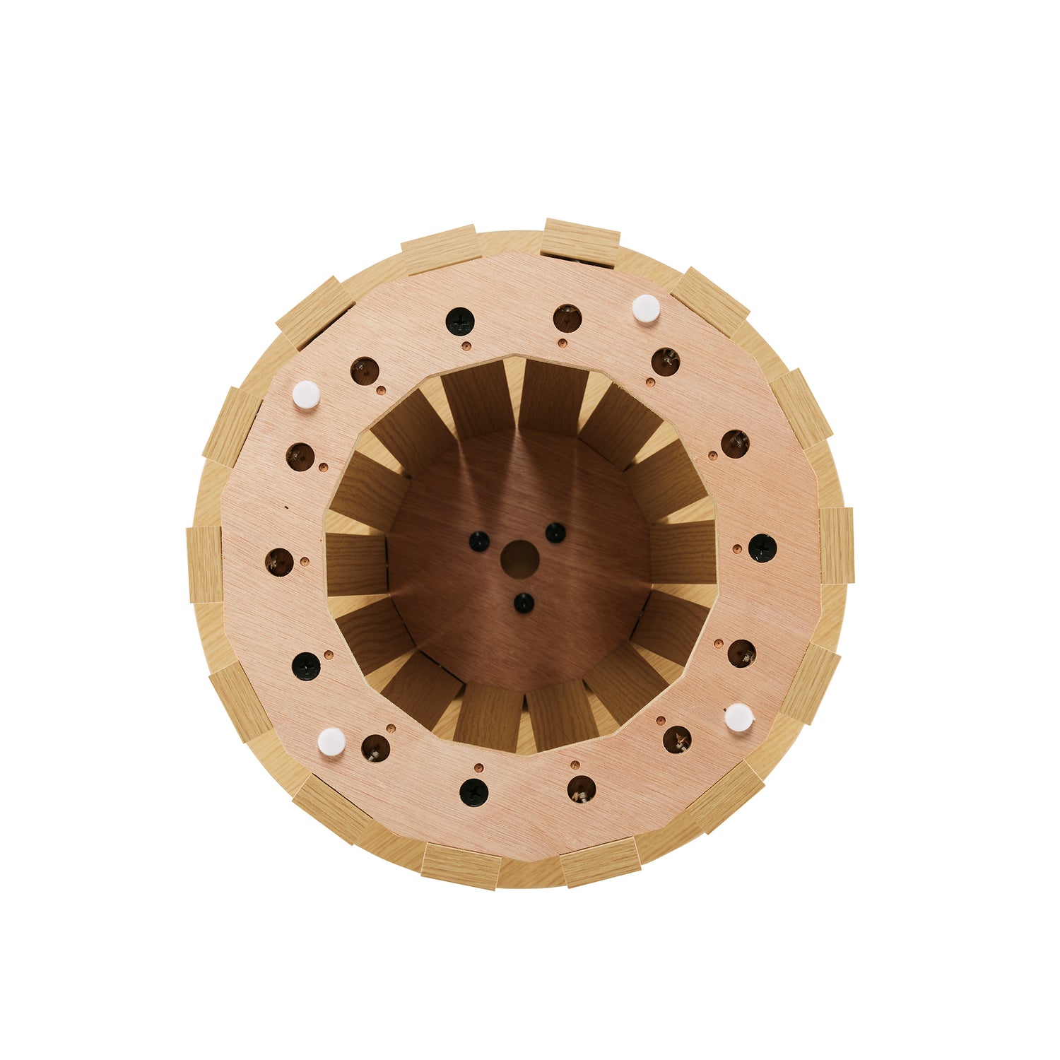 - Unique Slatted Conical Base Offers Stability with a Mid-Century Modern Flare.