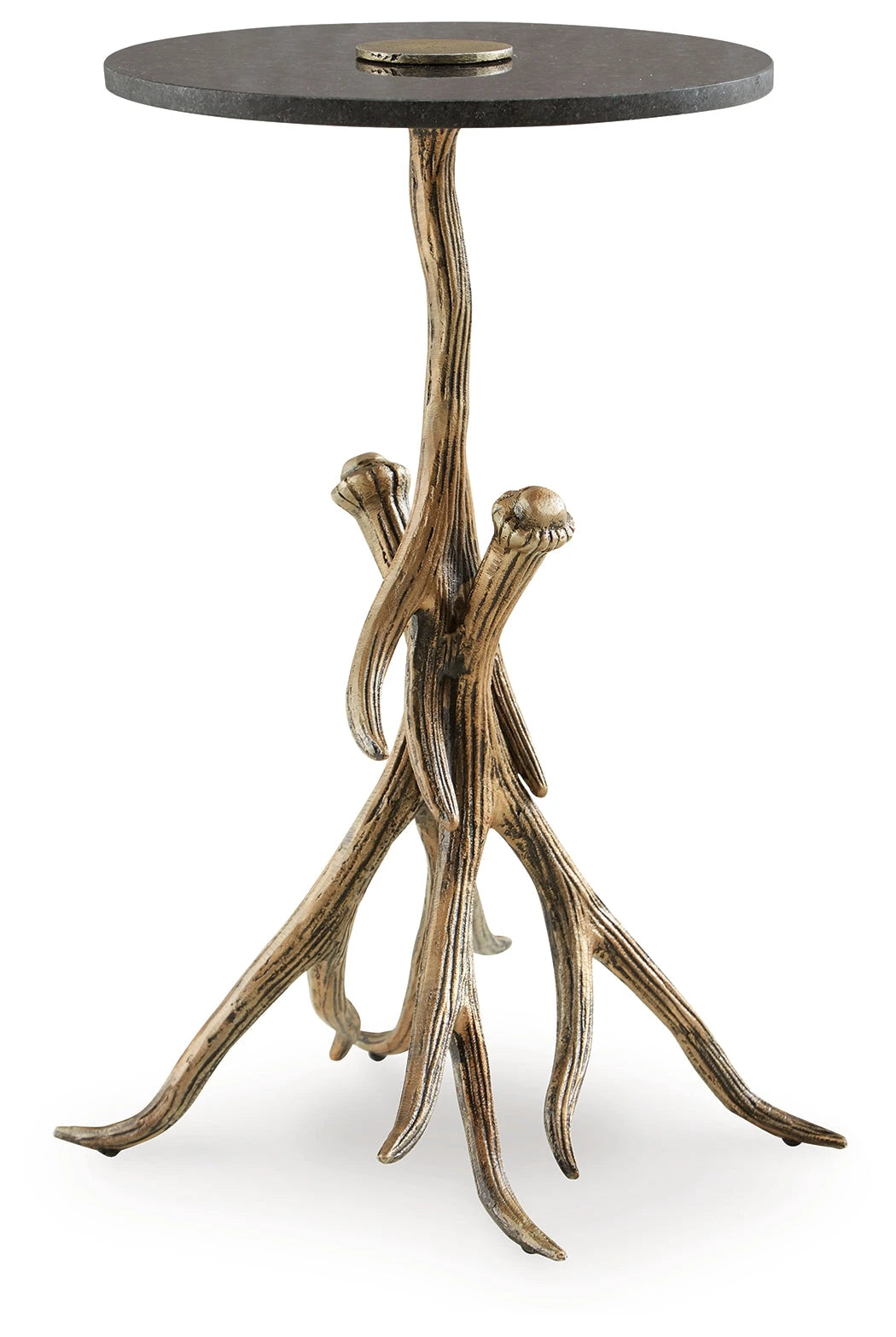 Elevate your living space with the captivating presence of this accent table. Rustic meets contemporary in the nature-inspired statement piece, which effortlessly delivers unique character. Faux antlers and a black marble top add a touch of elegance and character that's sure to make a lasting impression