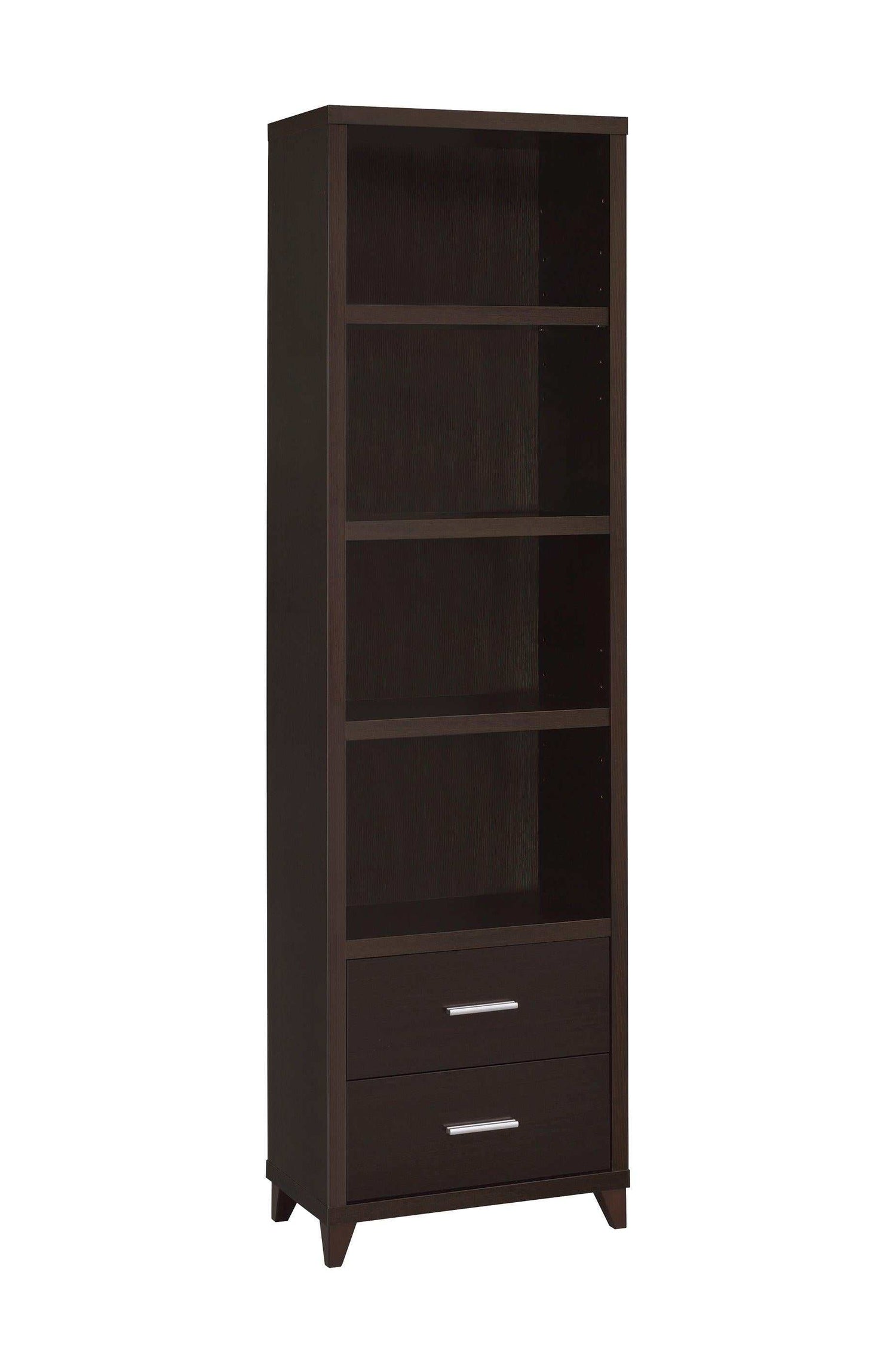 Overhaul your living space with this cappuccino entertainment wall. This wall is constructed with four pieces, including one TV console, two media towers and one bridge. A total of 16 shelving units are available to store your media and decor. Meanwhile, five concealed drawers enhance the organization of your living space. This transitional entertainment wall is suitable for all styles of living spaces with its clean and modern design.