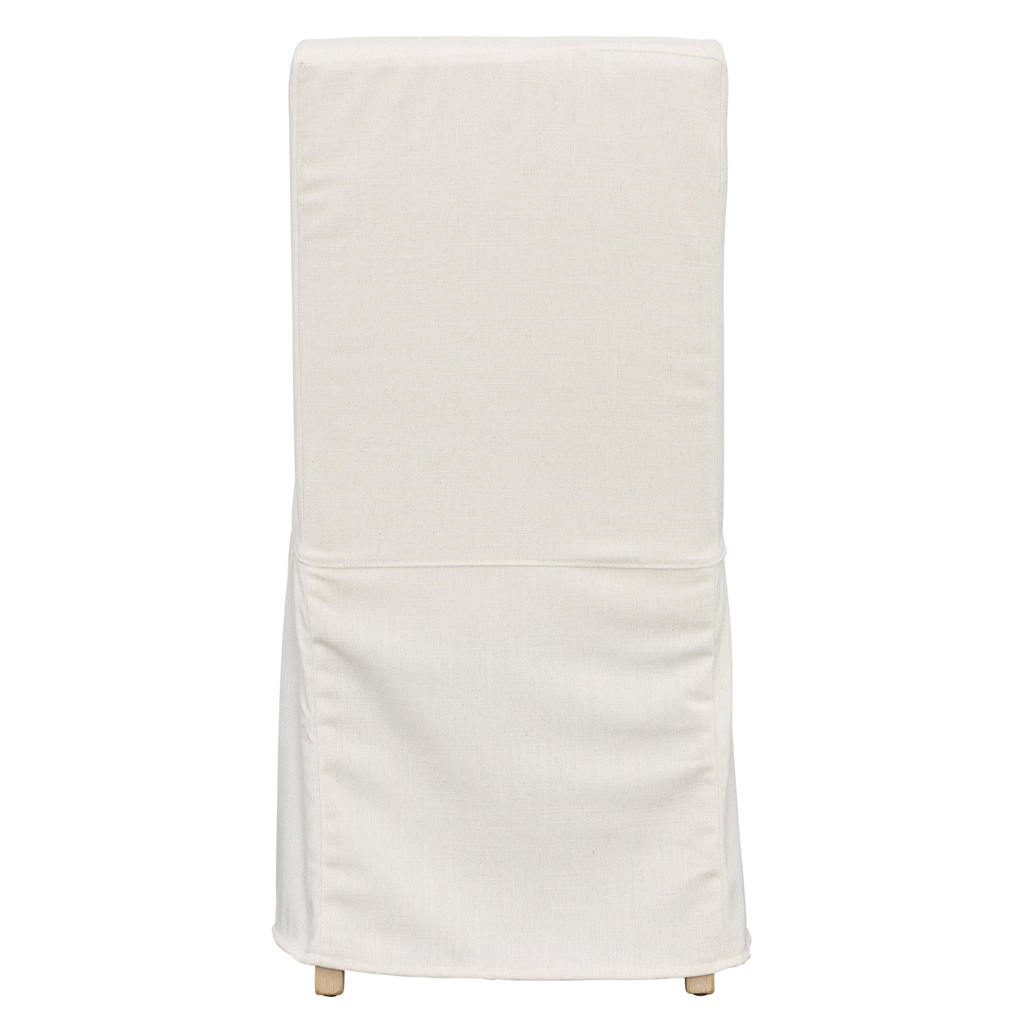 The Leni Dining Chair features a durable oak wood frame with a soft cotton blend slipcover in off-white. Its classic design combines timeless elegance with comfort, making it a versatile addition to any dining room. Perfect for enhancing your space with a touch of understated sophistication.