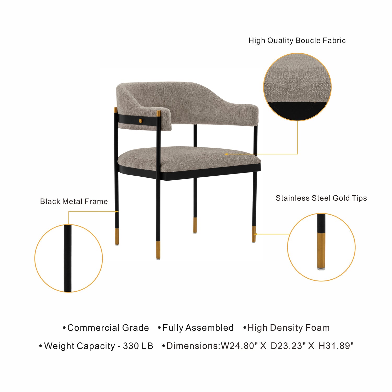 - Dining Armchair Dimensions Measure: 24.8 in. Length, 31.89 in. Height, 23.23 in. Depth.